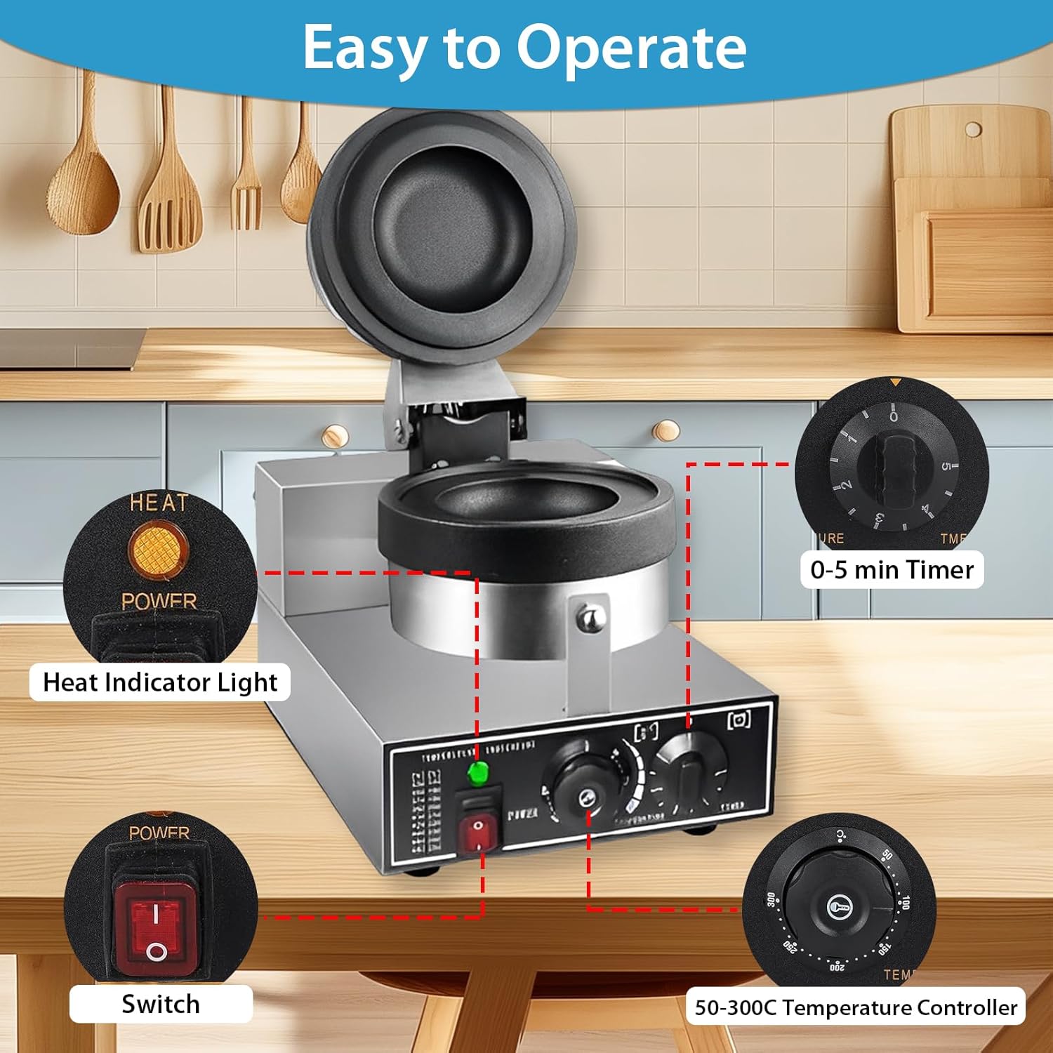 - INTELLIGENTER BEDIENKNOPF: Ausgestattet mit einem präzisen Timer und Temperatureinstellknopf beträgt der Zeiteinstellbereich 0–5 Minuten und die Temperatureinstellung 50–300 °C, um sicherzustellen, dass jede Garzeit genau richtig ist. Ein klarer