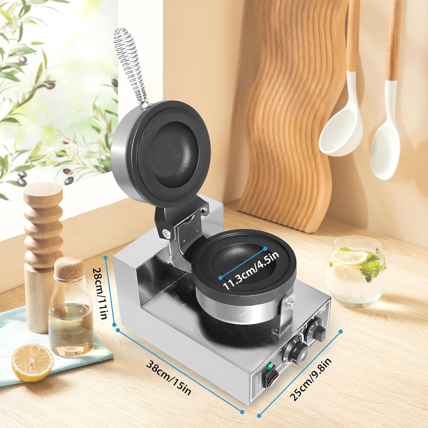 - VIELSEITIG EINSETZBAR: Sie können den warmen Waffeln nach Belieben Schokolade, Süssigkeiten und andere Dekorationen hinzufügen, um ihnen Geschmack zu verleihen. Perfekt für Burgerläden, Eisdielen, Imbissbuden, Dessertläden, Konditoreien oder für