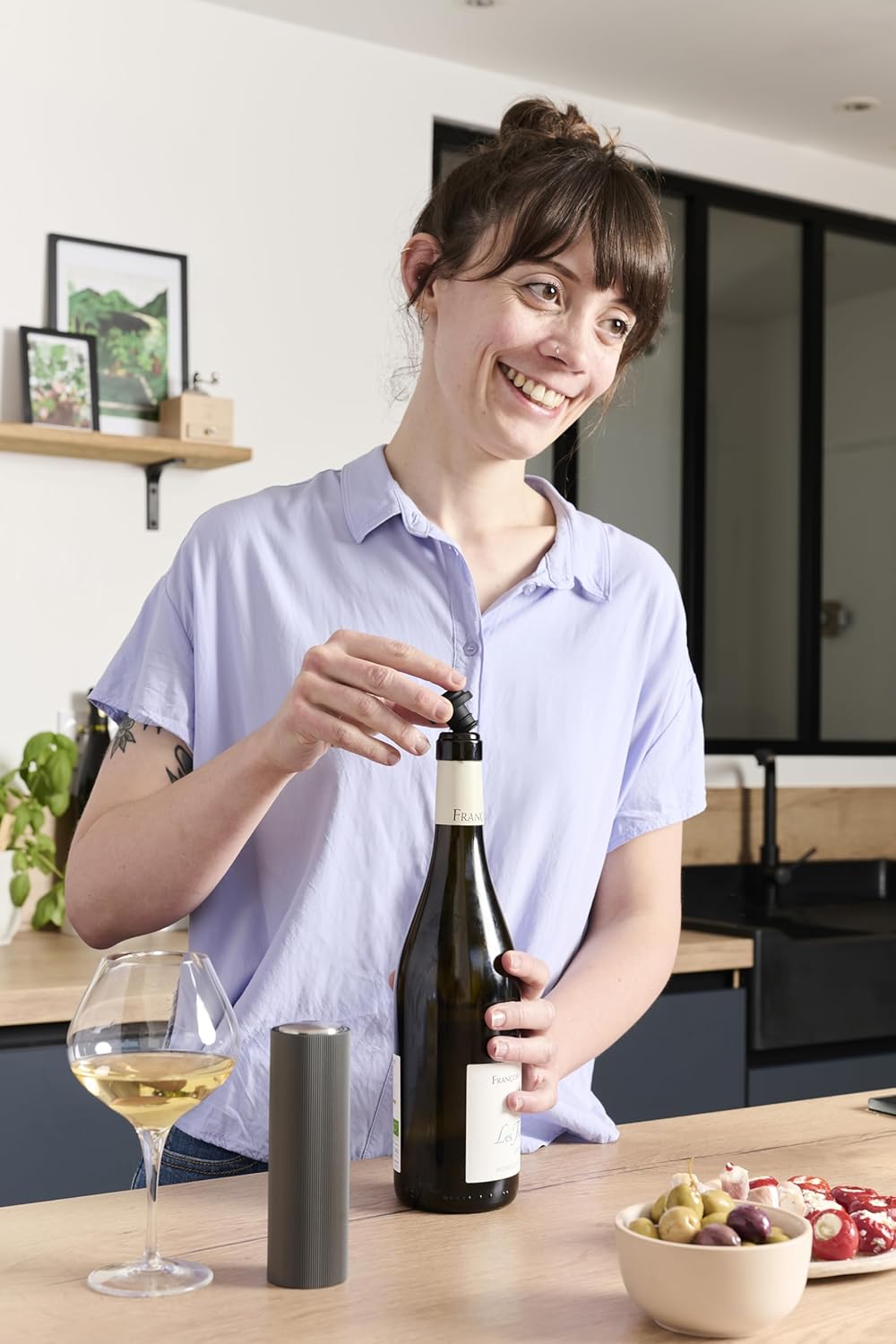 Elektrische Vakuumpumpe für Wein, 14 cm, Aluminium, 100% automatisch Karbonfarben Elektrische, Karbo