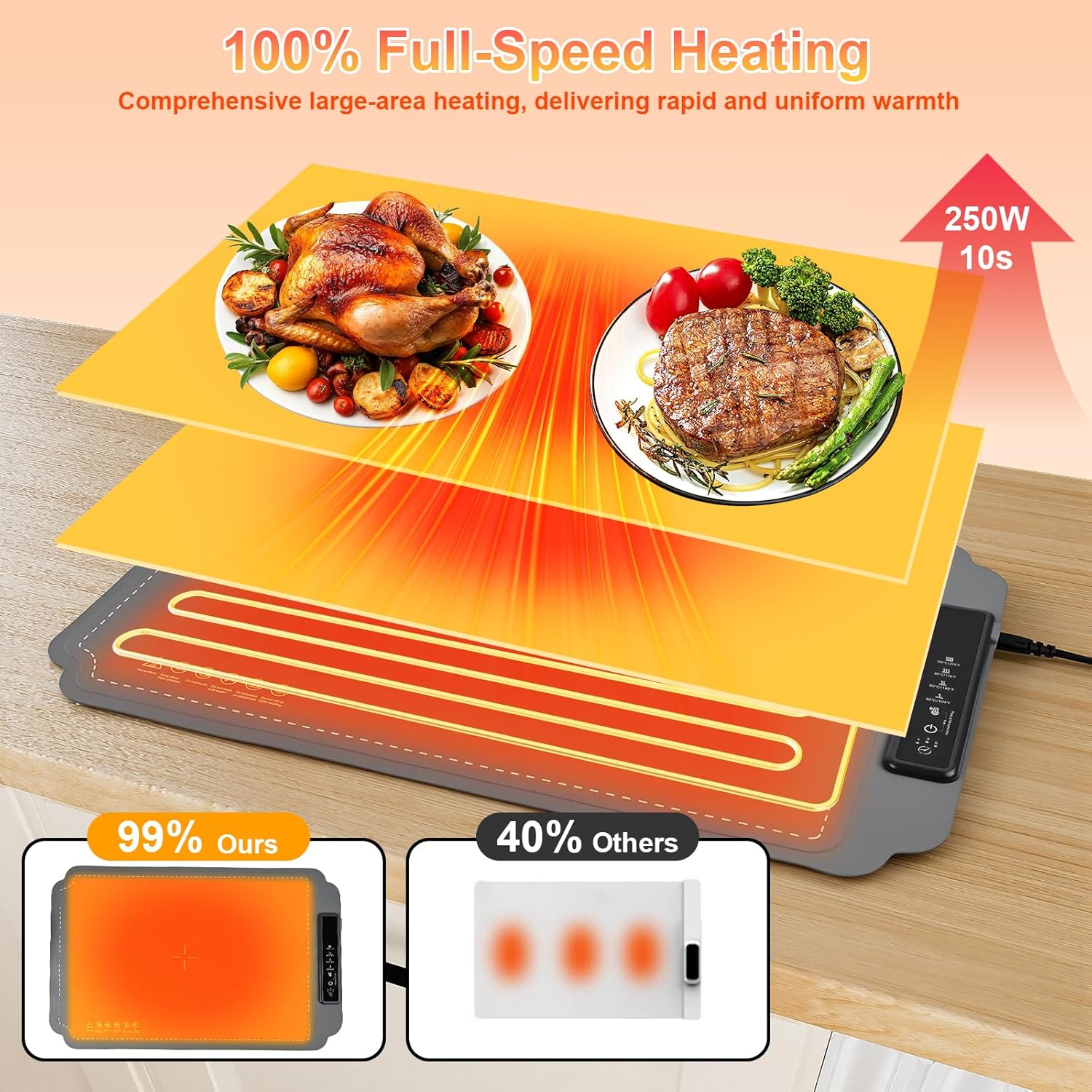 - 【Gleichmässige Wärmeverteilung】Unsere Wärmeplatte für Zuhause nutzt einen 250-W-Hochleistungsheizdraht und verbesserte Technologie für eine gleichmässige Wärmeverteilung über die gesamte Fläche. Kein Warten mehr – servieren Sie dampfend
