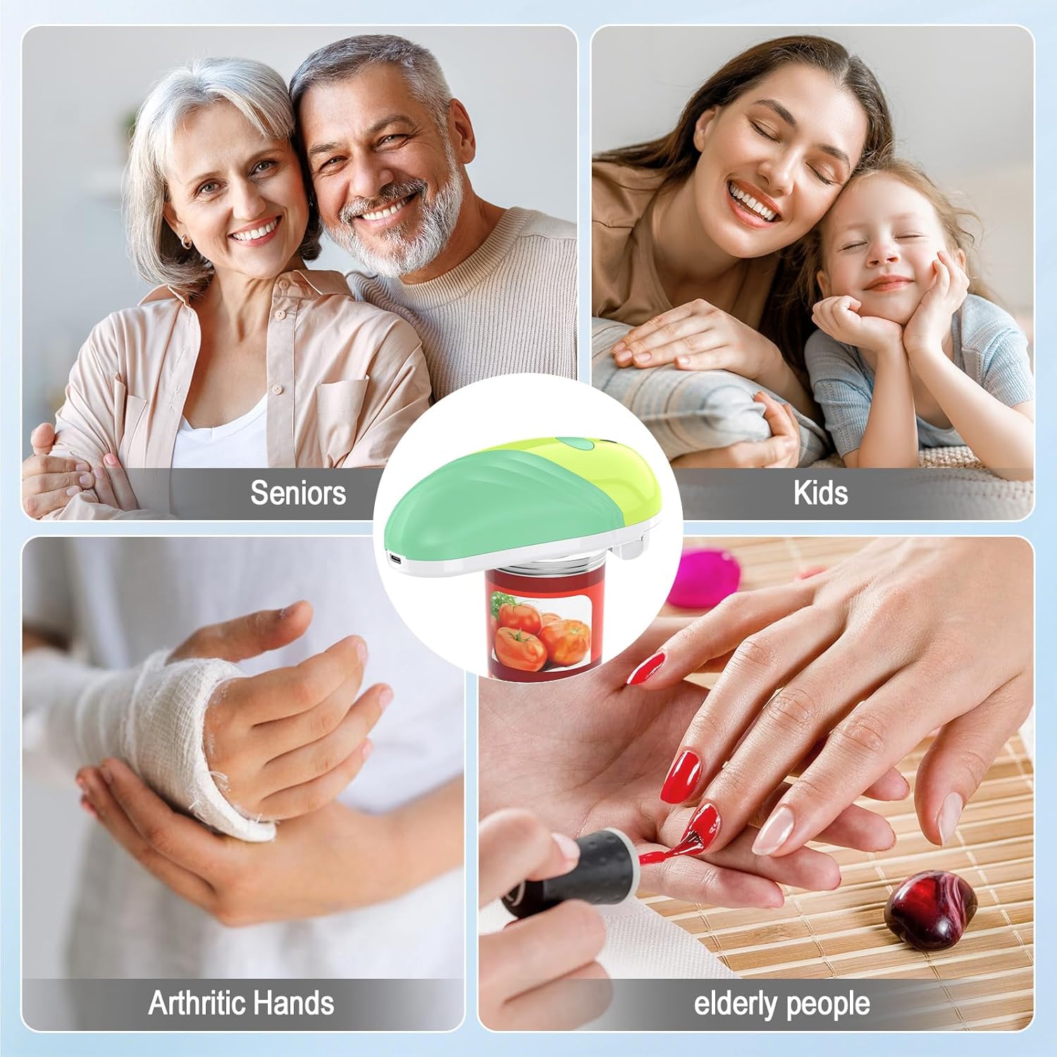 - Ergonomischer Dosenöffner: Dieser elektrische Dosenöffner wurde für Senioren und Arthritis-Patienten entwickelt. Dieser elektrische Dosenöffner bietet einen ergonomischen Griff, der das Öffnen von Dosen mühelos macht und die Belastung von Händen