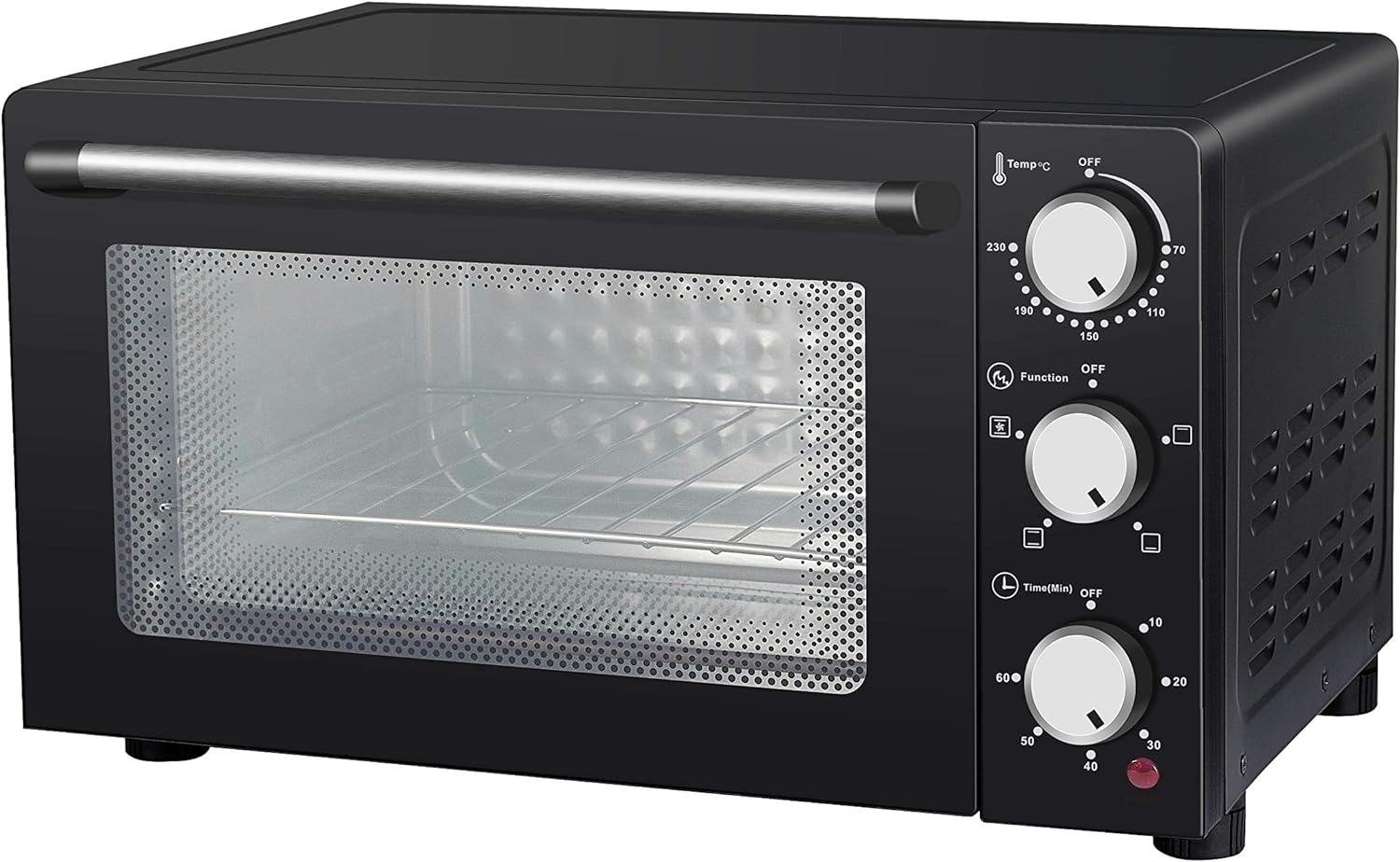 • Elektrischer belüfteter Backofen mit 24 Liter Fassungsvermögen, Innenwände aus Antihaftmaterial für eine einfache Reinigung; Abmessungen 46 x 38,2 x 27,3 cm