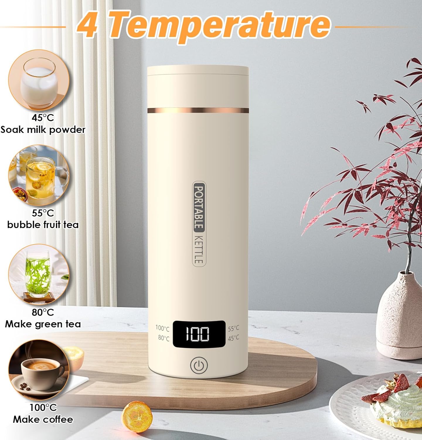 - Intelligente Temperaturregelung: Ausgestattet mit vier Ebenen der präzisen Temperaturregelung, 45 ° C, 55 ° C, 80 ° C und 100 ° C. Es wird intuitiv über den LCD -Bildschirm angezeigt und ist speziell für das Brauen von Babymilchpulver, grünen