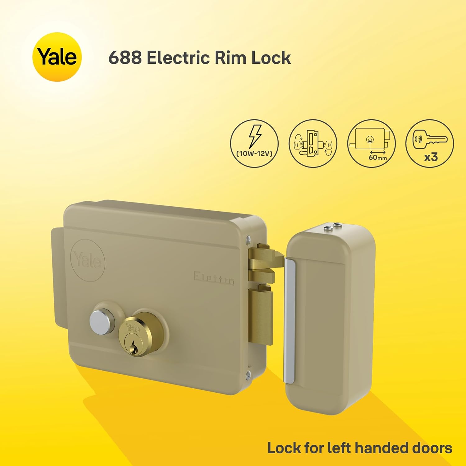 Elektrisches Schloss für Tore Art. 688 mit Schnapper Schwingen von aussen mit Schlüssel, von innen d