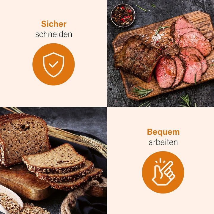 - ✅ VIELSEITIG EINSETZBAR - Der Allesschneider ist nicht nur für den Braten geeignet. Schneiden Sie mit diesem Elektroschneider Brot, Kuchen oder auch Döner und Gyros.