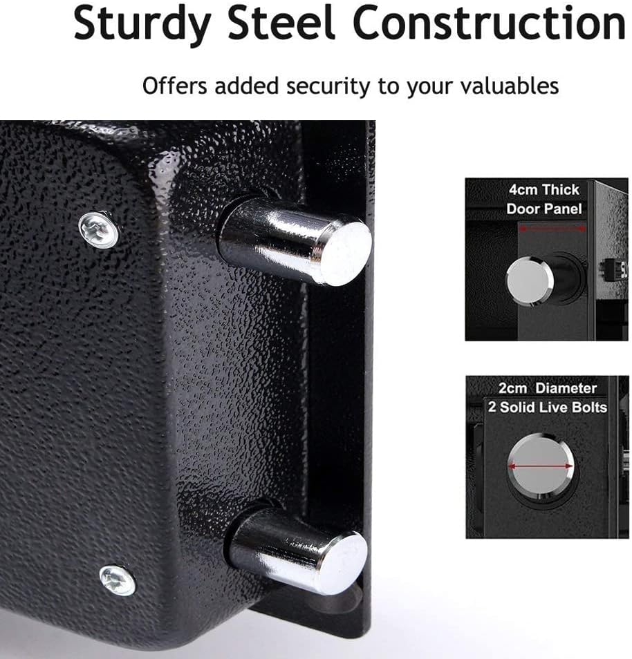 - Upgrade Secure Design: Dieser Safe kann zu Hause mit vorgebohrten Löchern und 2 Ankerbolzen am Boden oder an der Wand montiert werden. Sie können Ihren Safe in einem Regal, einer Wand oder einem Schrank sichern und so zusätzlichen Schutz gegen