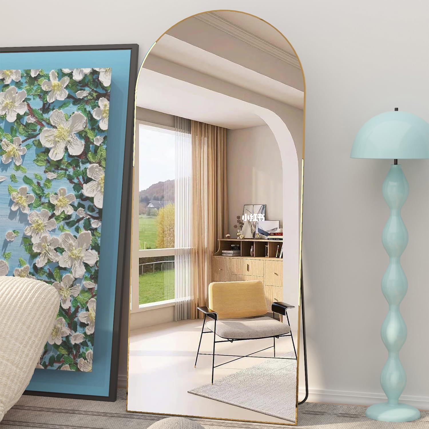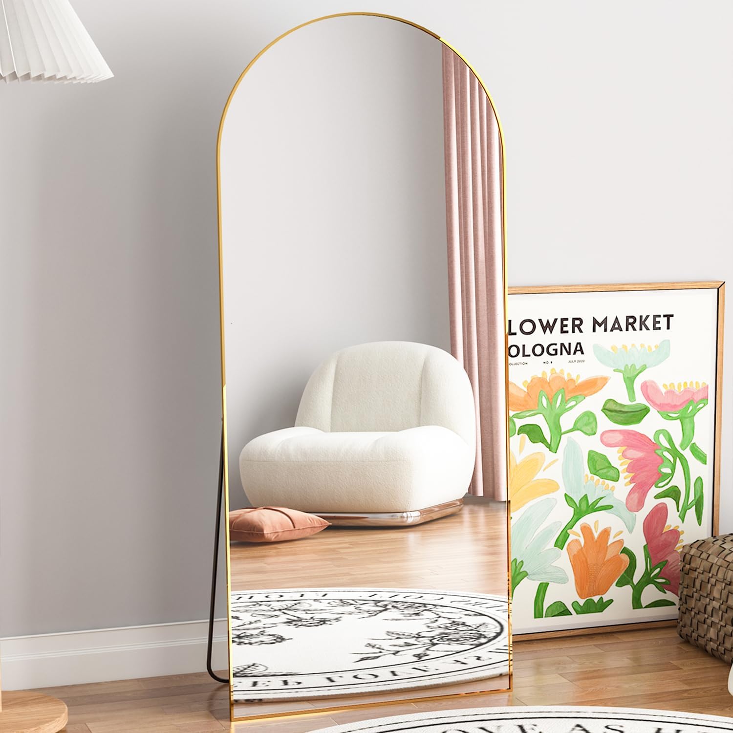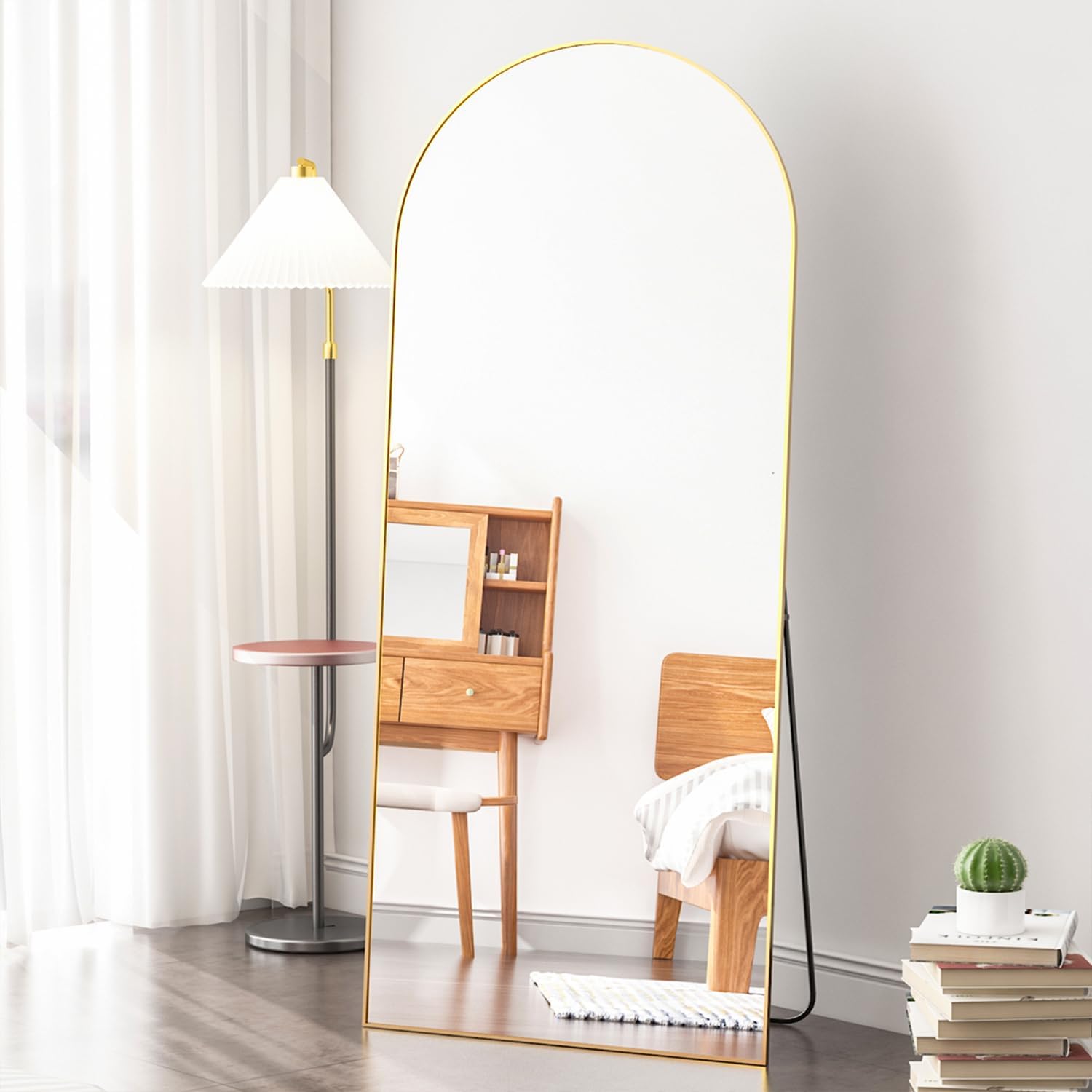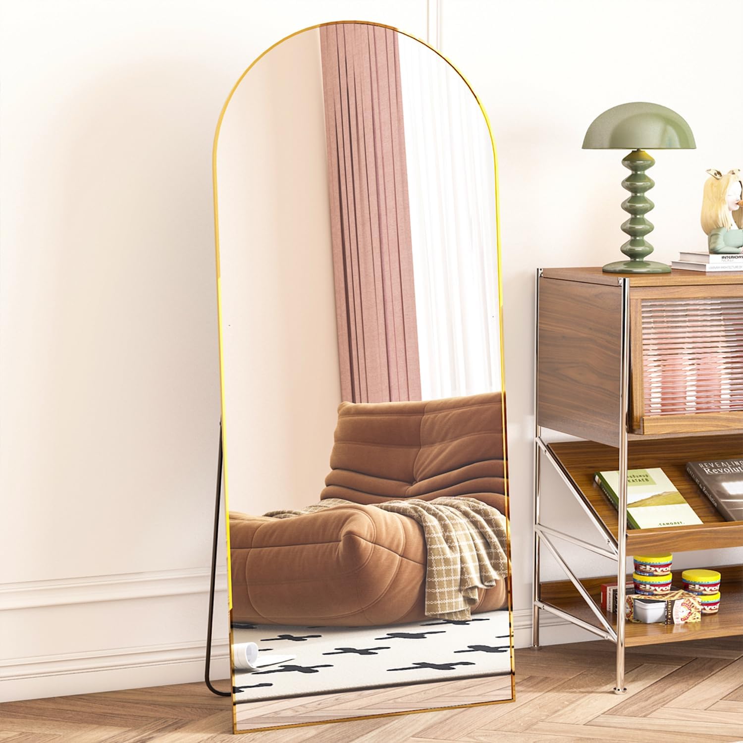 Elemango Bogen Ganzkörperspiegel, 165x60cm Gross Bodenspiegel, Gold Ganzkörperspiegel aus Holz, Gewö