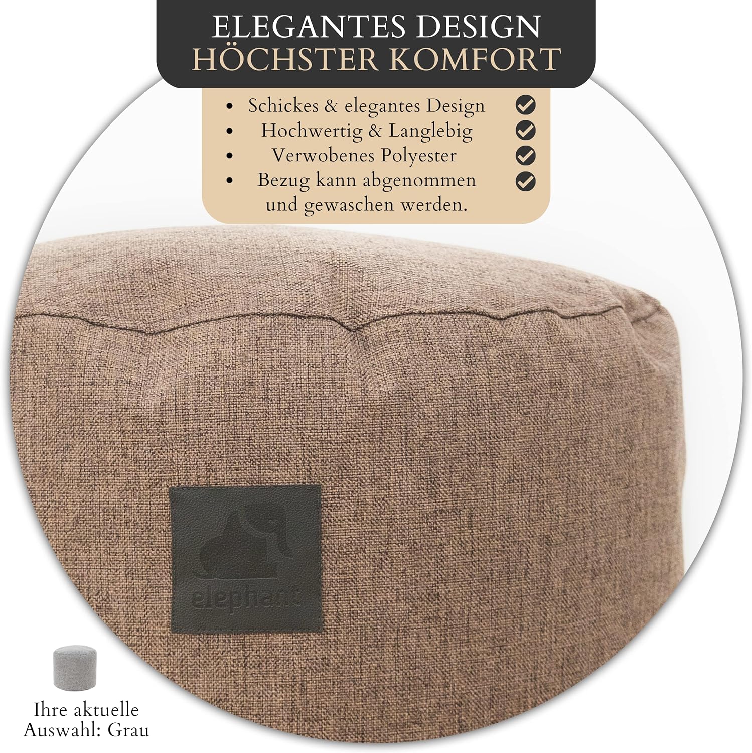 Elephant Living - Der Footstool Pouf - Premium Indoor Hocker rund - hergestellt aus hochwertigem, ve