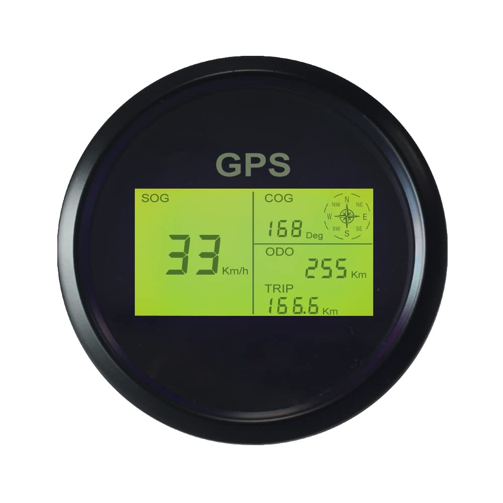 - Trip und Kilometerzähler, Geschwindigkeit: 0–999 (MPH, Knoten, km/h einstellbar), Kilometerstand: 0–99999 (Mi, NMI, KM verfügbar)
