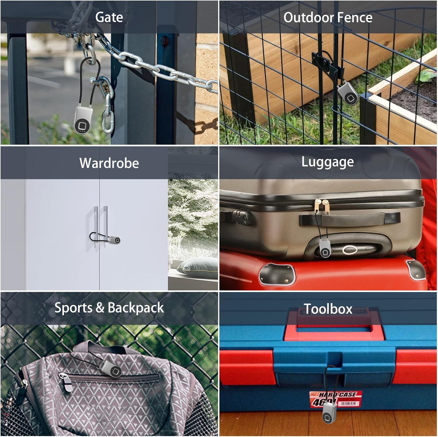 - 【Robust und wetterfest】Dieses Kordel-Vorhängeschloss mit Fingerabdruck-Vorhängeschloss ist fein geschmiedet mit Aluminiumlegierungs-Metallkörper und Edelstahlbügel für hervorragende Schnittfestigkeit. IP65 wetterfest schützt vor Staub und