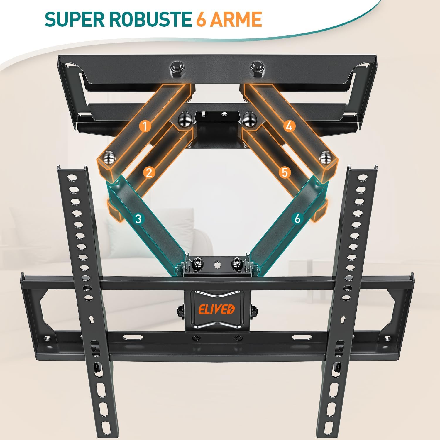 • Robust und Sicher - Die Konstruktion mit 6 Armen sorgt für Stabilität und Sicherheit. Professionelles Design und geprüfte Konstruktion garantieren die Qualität der Wandhalter Fernseher.