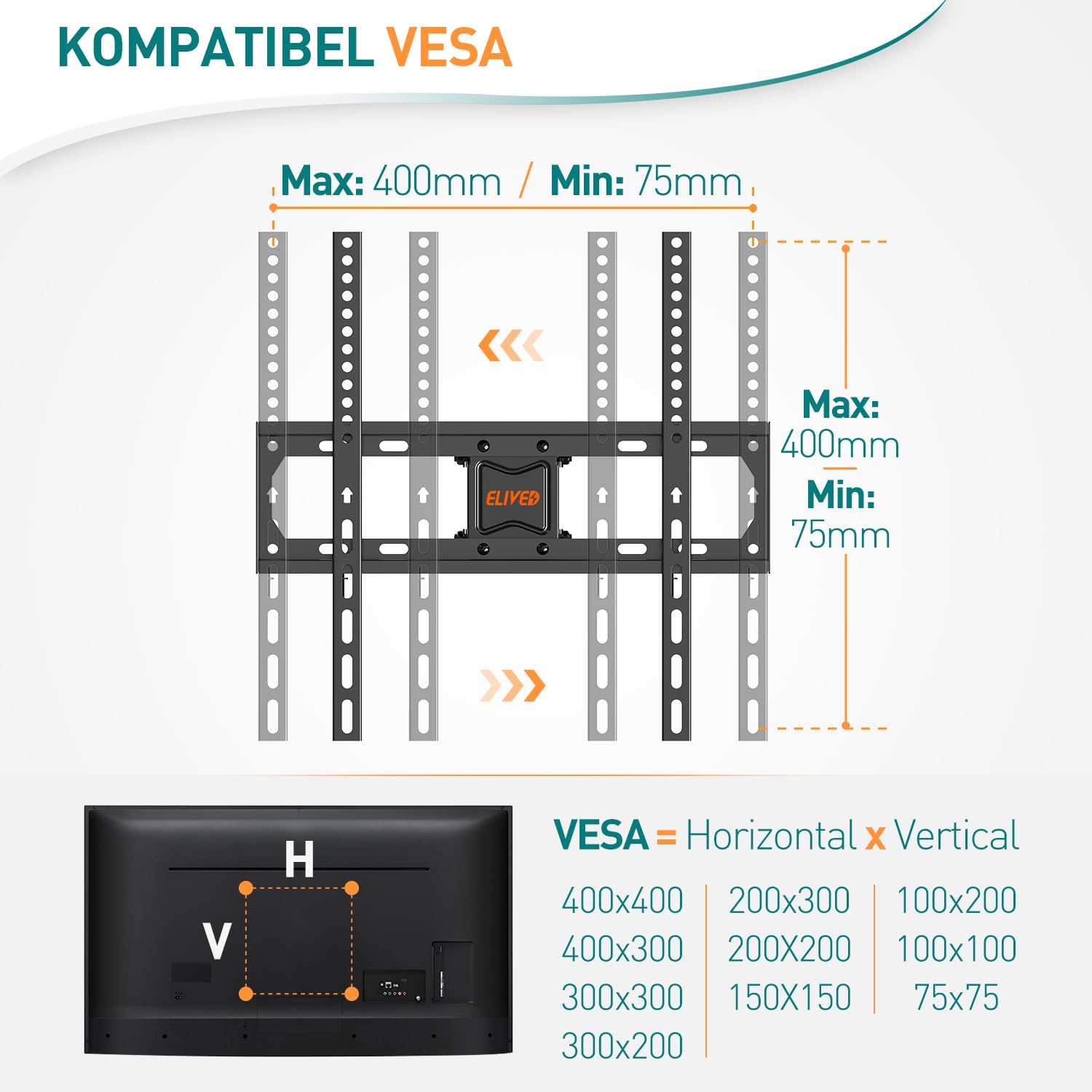 • Universelle TV Halterung - Diese schwenkbare neigbare TV Wandhalterung ist für die meisten 26 - 65 Zoll Flach und Curved Fersehern bis zu 40kg geeignet, mit VESA von 75x75mm bis 400x400mm. Diese TV Wandhalter ist für die Montage von massivem Beton,
