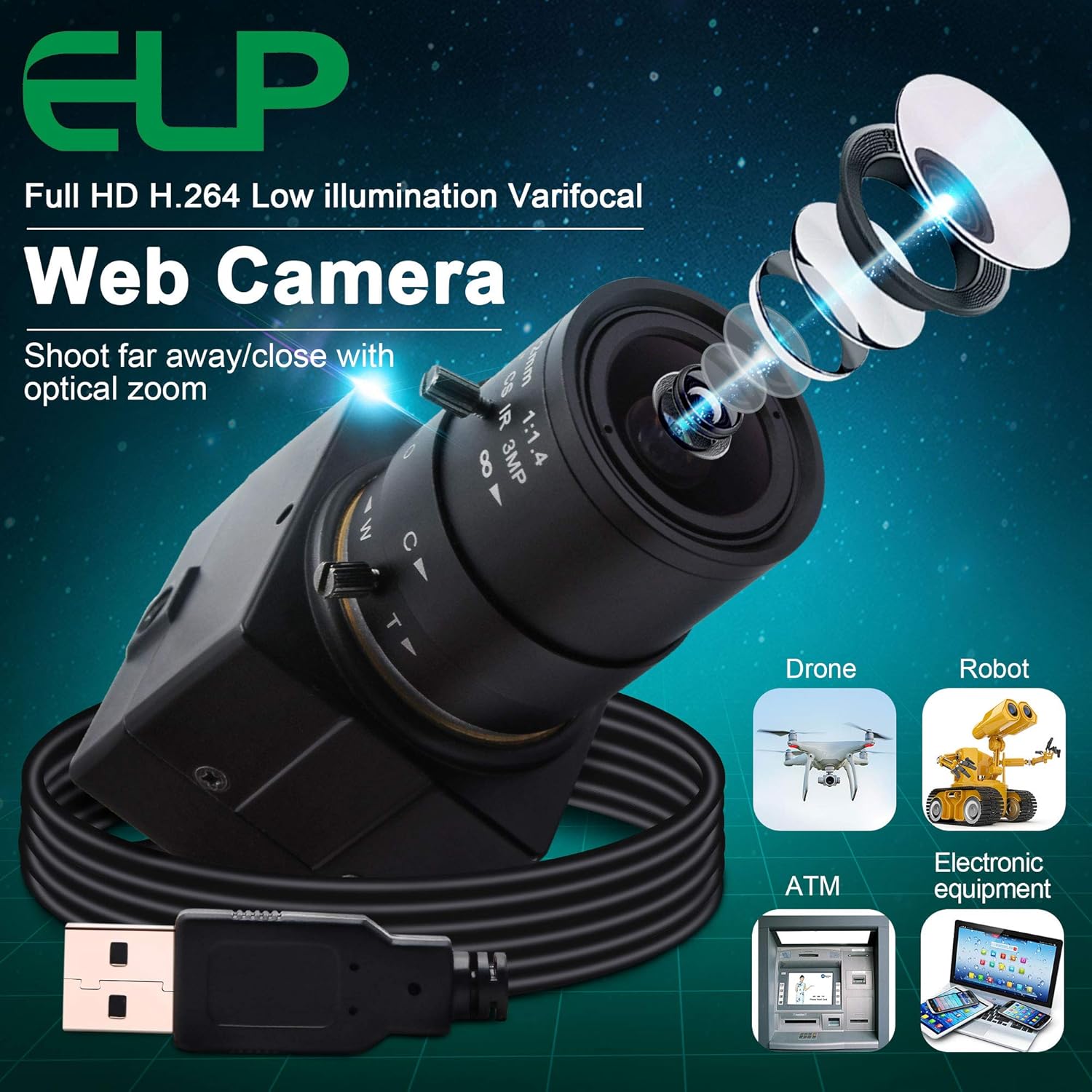 - ELP USB Camera can be connected on Rasperry Pi . Some customer also use the ELP mini cmos usb camera with Amcap/ the free Yawcam software / the ContaCam software