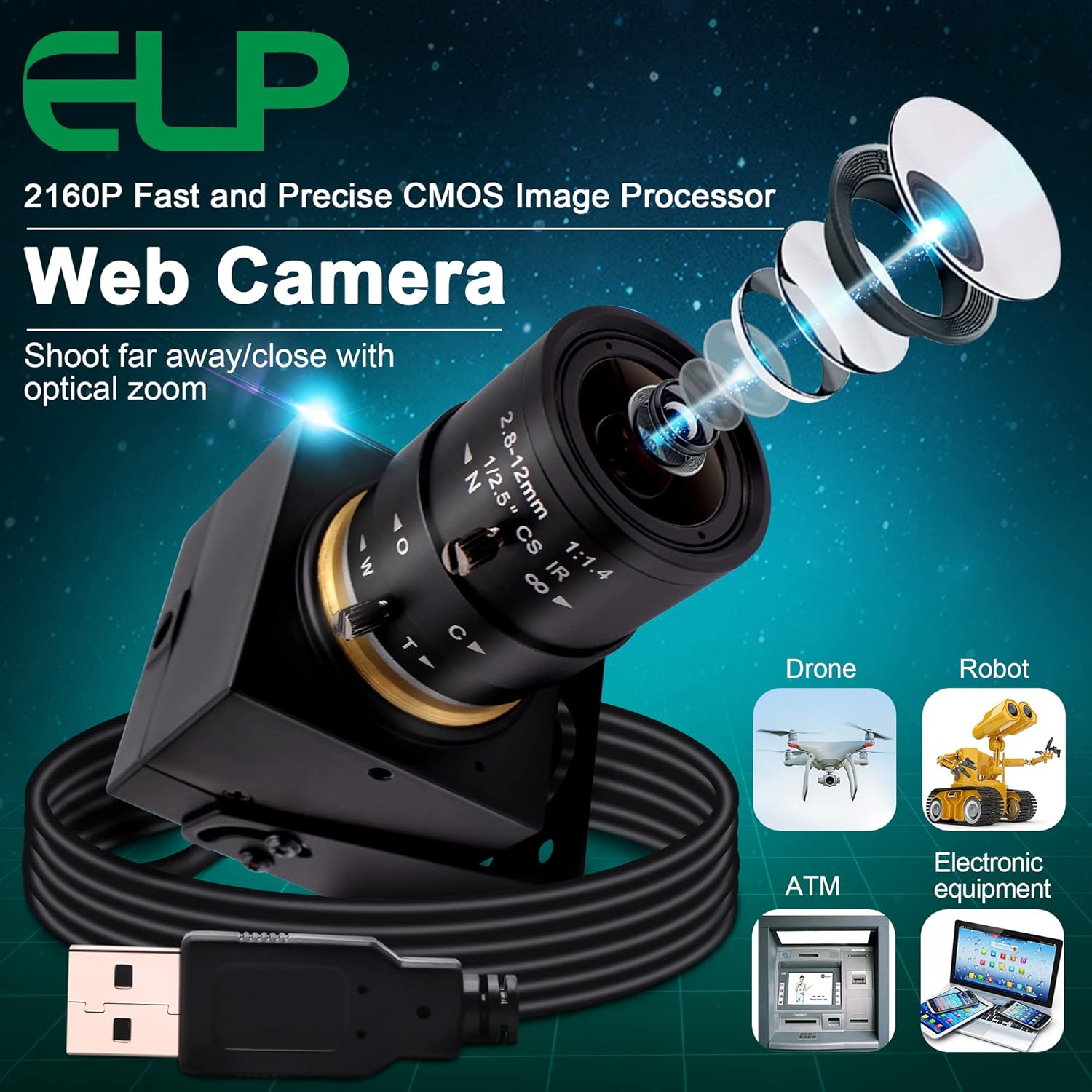 - 【Weitwinkel 2.8-12mm Varifocal Zoom Objektiv】4K Zoom Webcam mit HD 2.8-12mm optischem Varifocal Objektiv.Optischer manueller Zoom die 2.8-12mm Zoom Objektiv Webcam erfasst verschiedene Szenen für verschiedene Anforderungen.Stellen Sie Zoom / Fokus /
