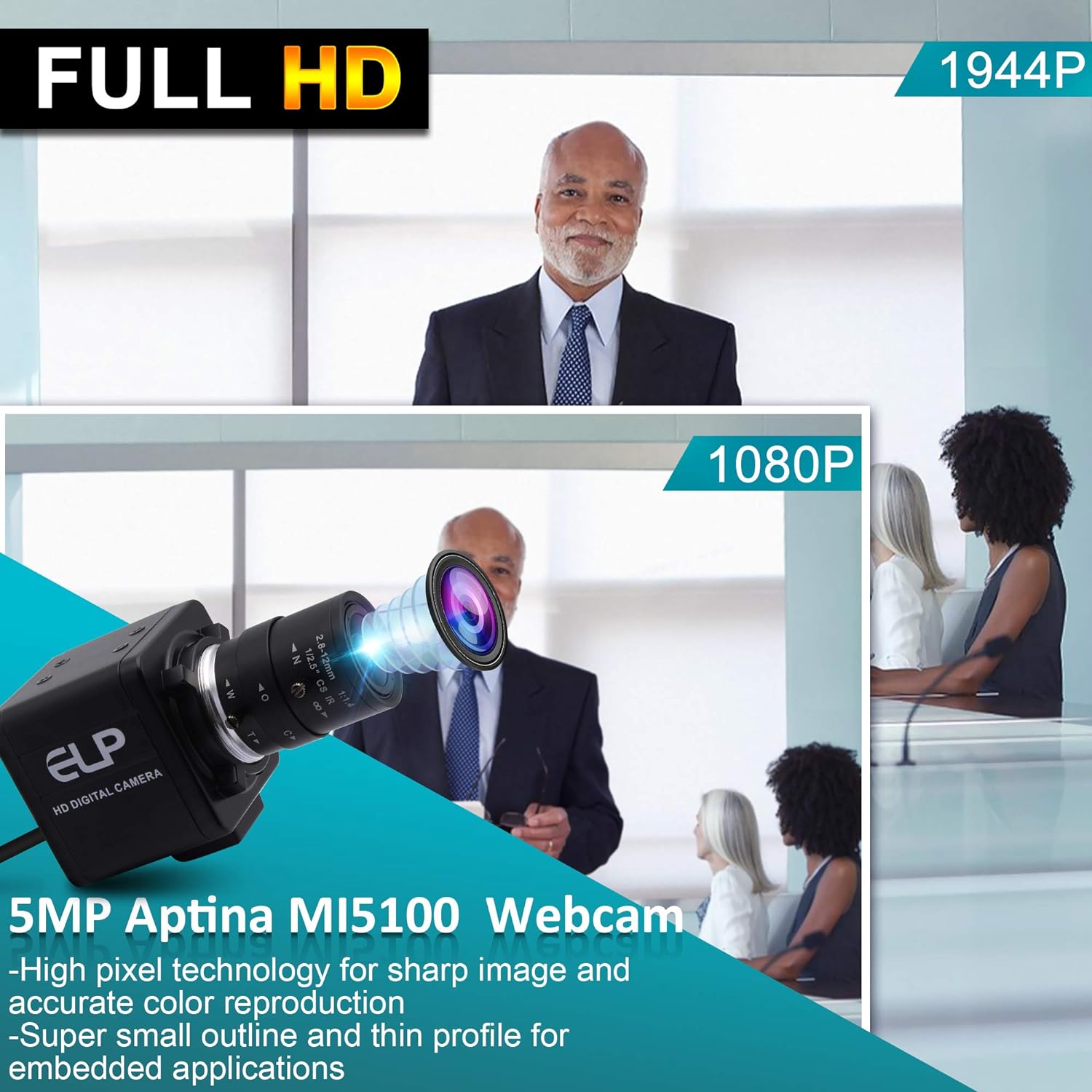 - 【Full HD 1944P PC Webcam】USB500W05G-MFV(2.8-12) Webkamera USB 5MP 2.8-12mm Varioobjektiv USB-Kamera Aptina MI5100 Sensor, Webcam-Unterstützung 2592X1944@15fps, kostenlose Treiber-Webkamera-Unterstützung Die meisten Betriebssysteme,