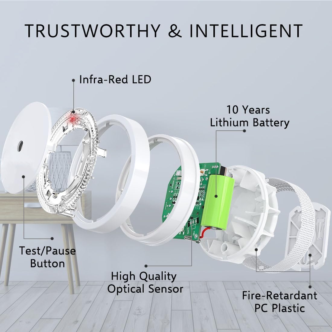 - Optischer 10-jahres Rauchsensor für zuverlässigen Schutz ohne radioaktive Substanzen