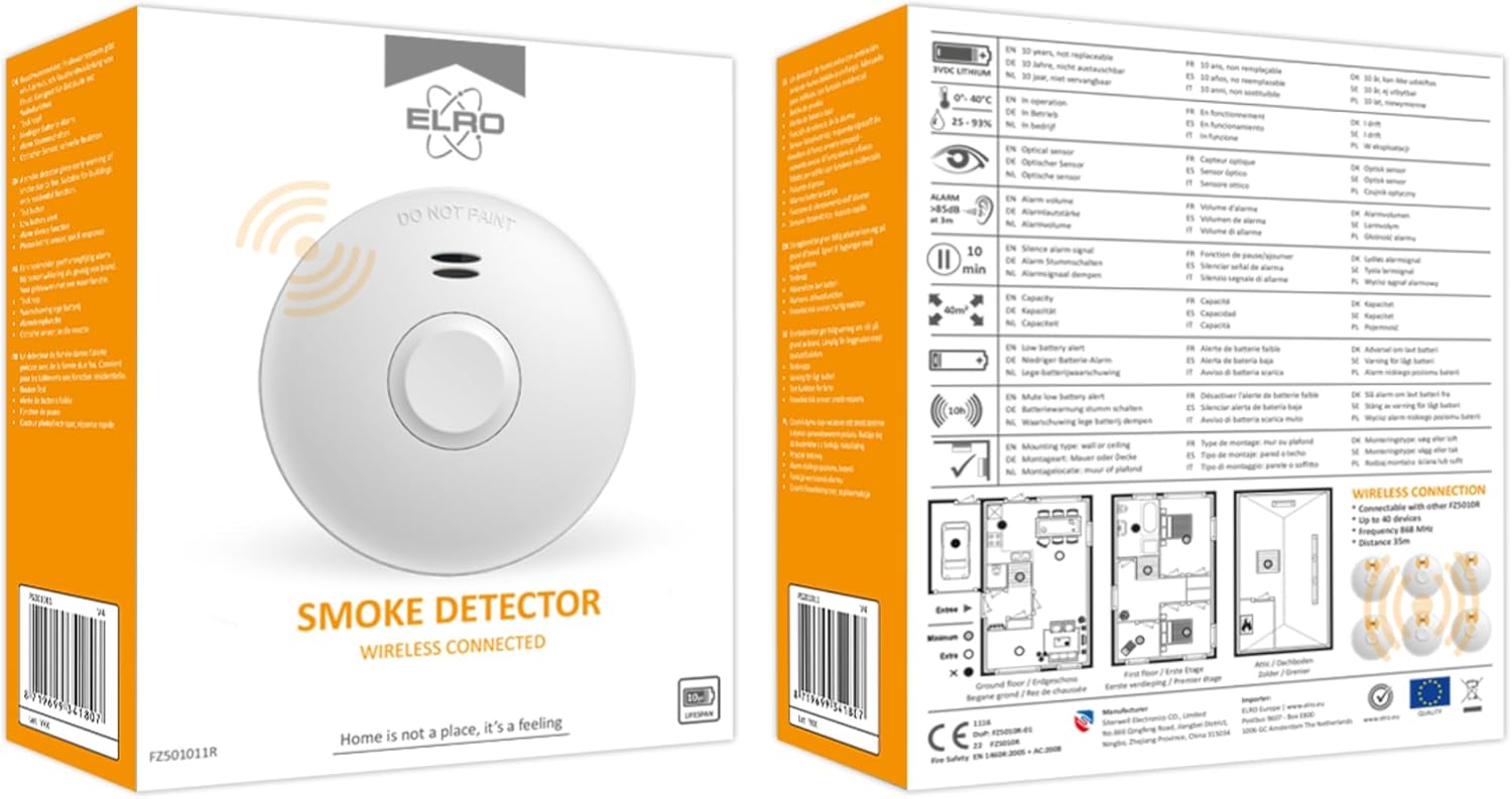 - Drahtlos mit anderen ELRO FZ5010R Rauchmeldern vernetzbar