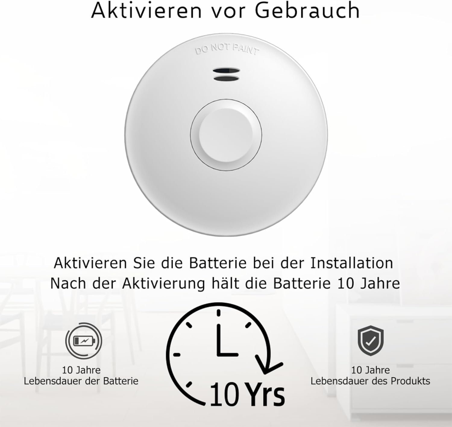 - Mindestens 10 Jahre Schutz ohne Austausch der Batterien
