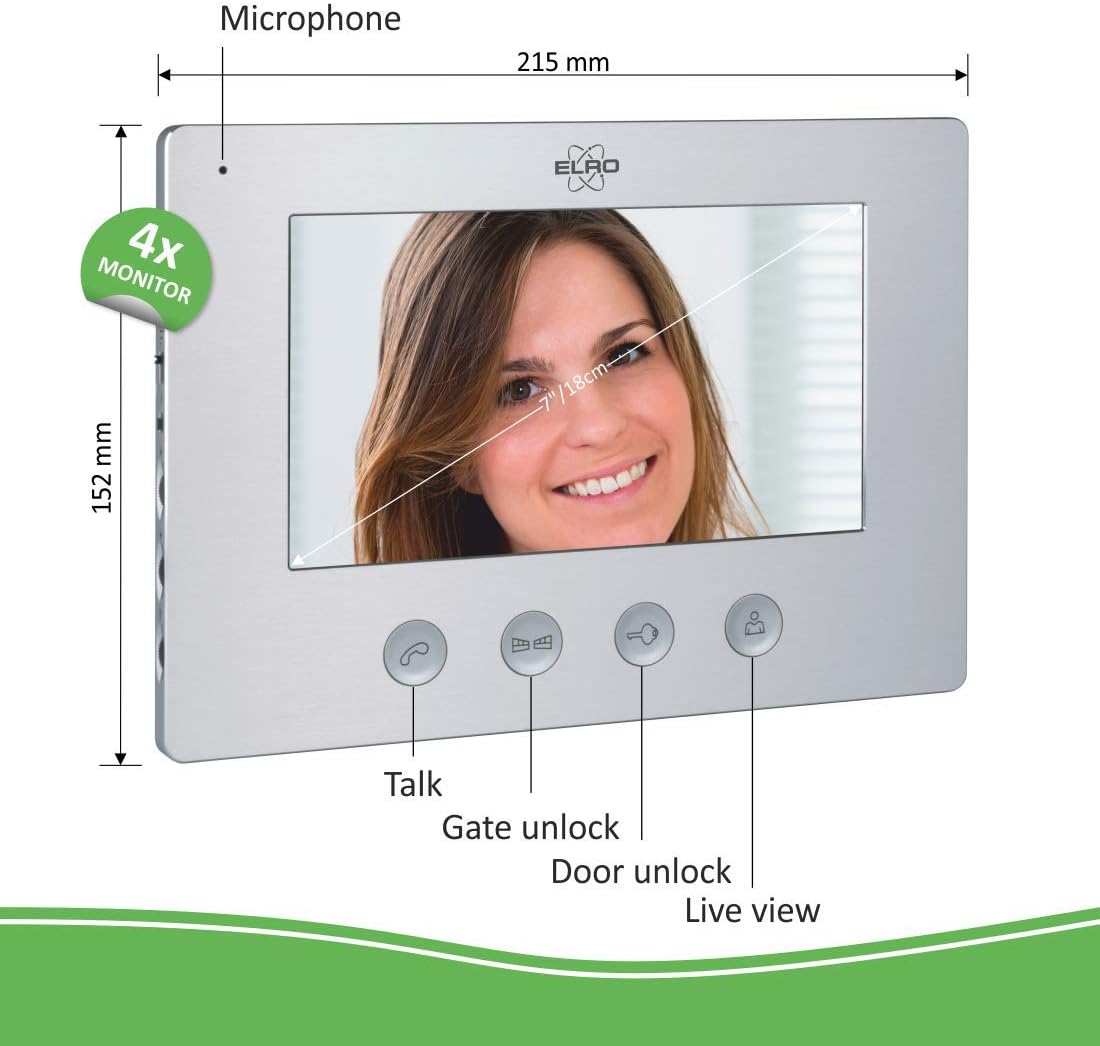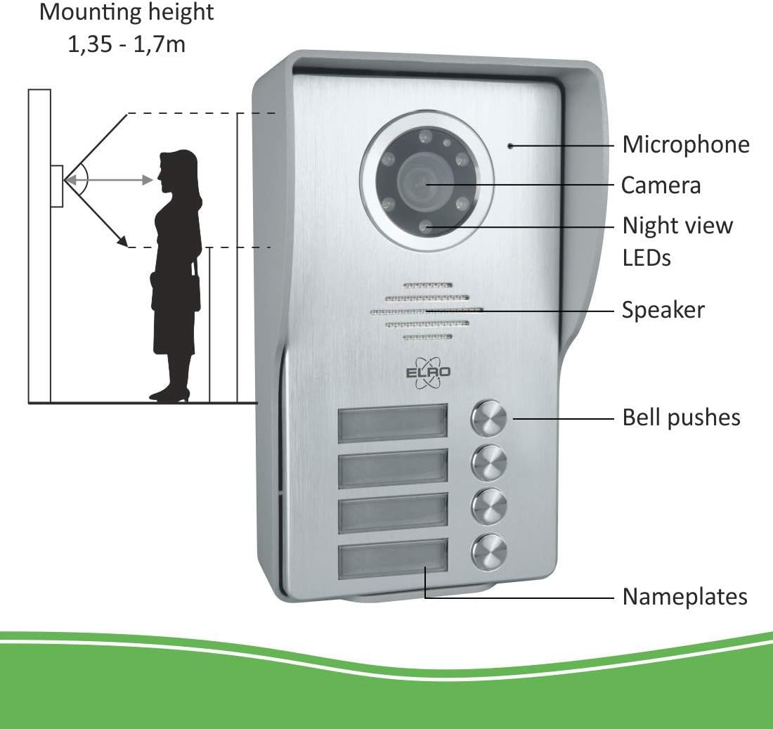 - Stabiles Vollmetall Wetterschutzgehäuse und manuell schwenkbare Kamera in der Aussenstelle mit 4 Klingelknöpfen