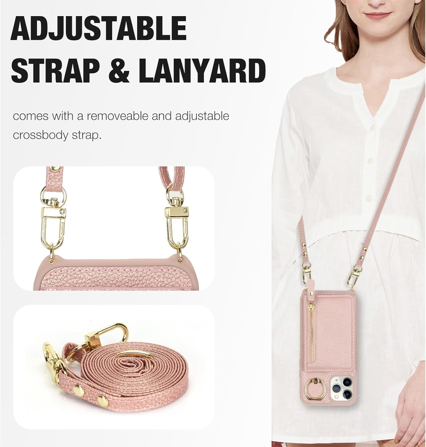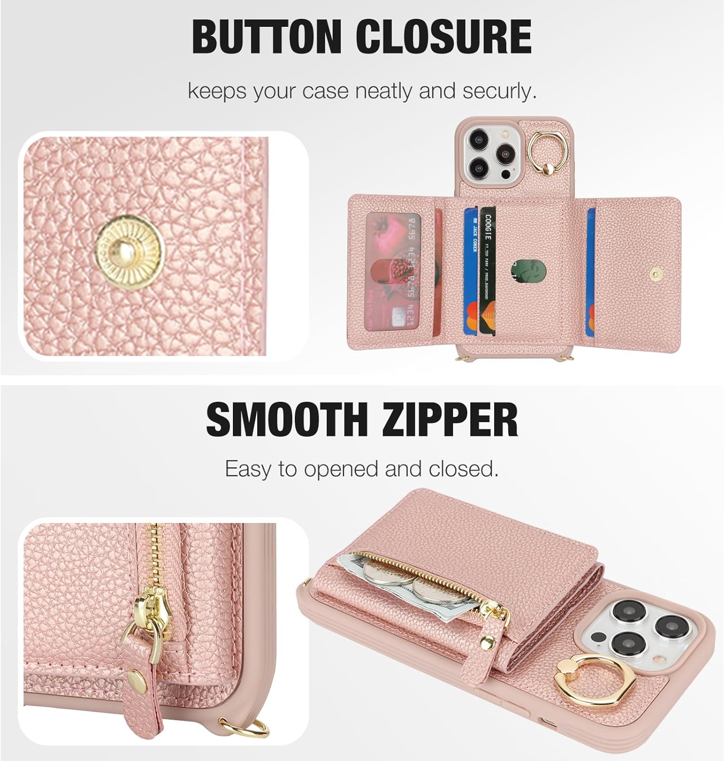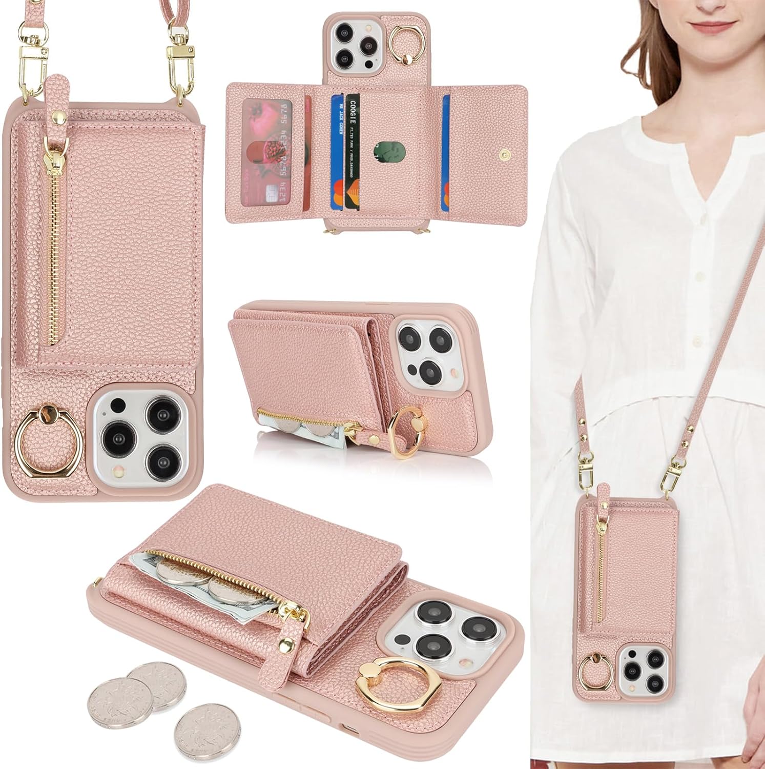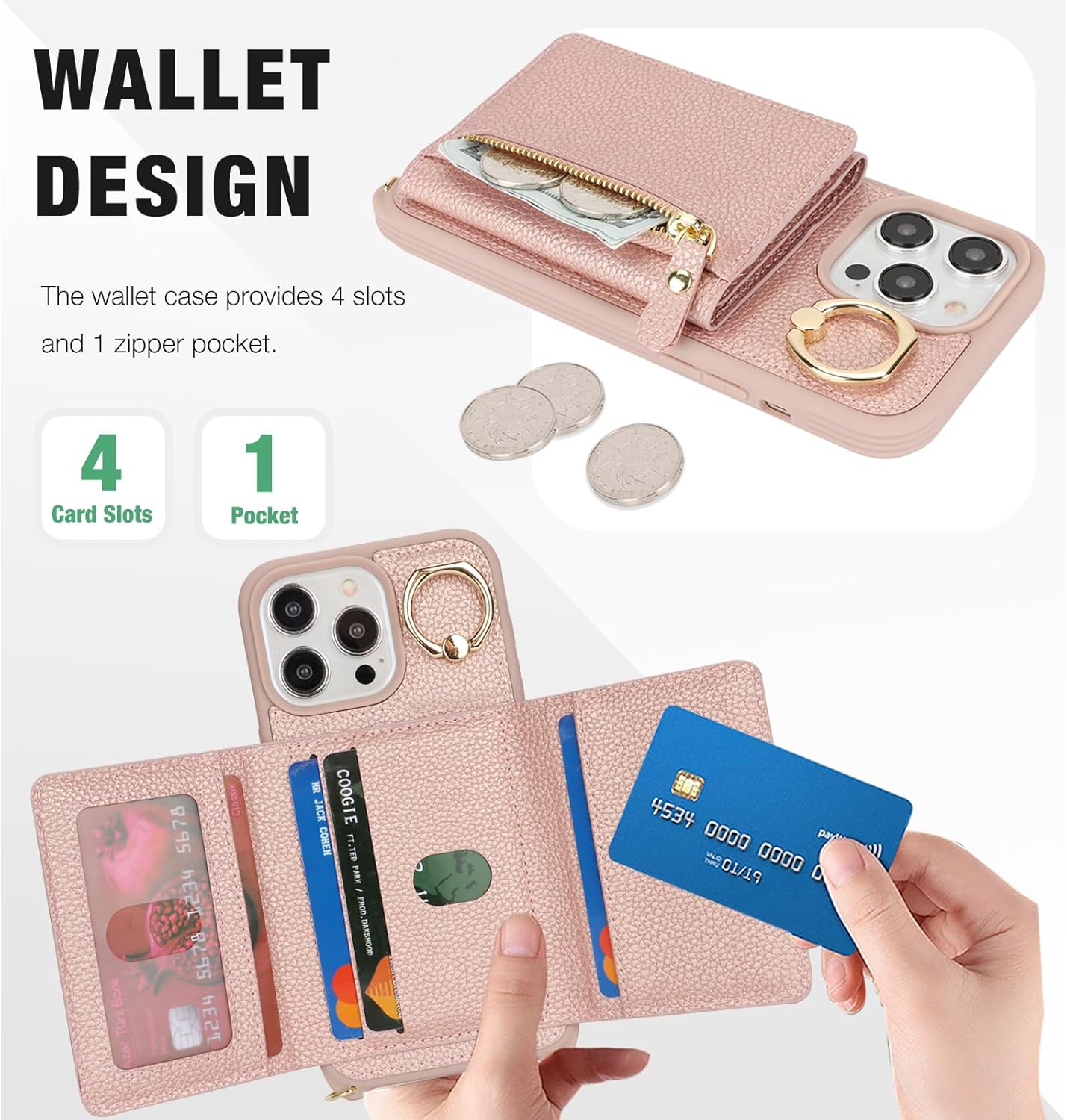 ELTEKER Handyhülle für iPhone 12 Pro Max Hülle mit Band Kartenfach Handykette Ringhalterung Geldbörs