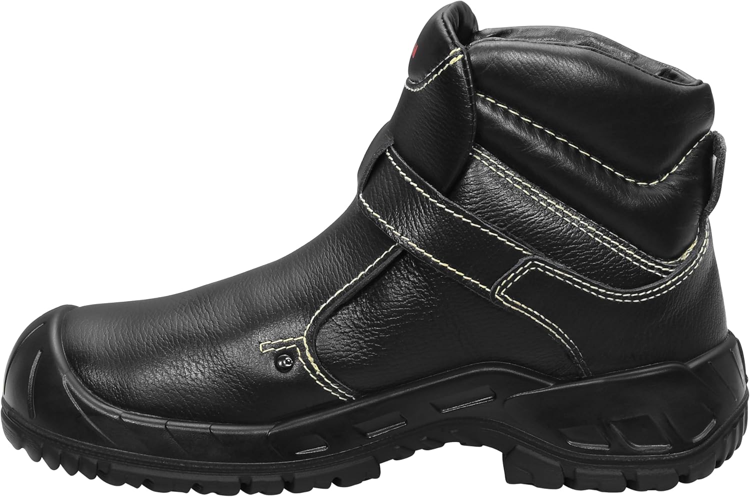 - Grobstollige GUMMI/PU-Sohle, rutschfest (SRC), Laufsohle hitzebeständig bis 200 Grad C (kurzzeitig bis 300 Grad C), Überkappe: PU-Spitzenschutz