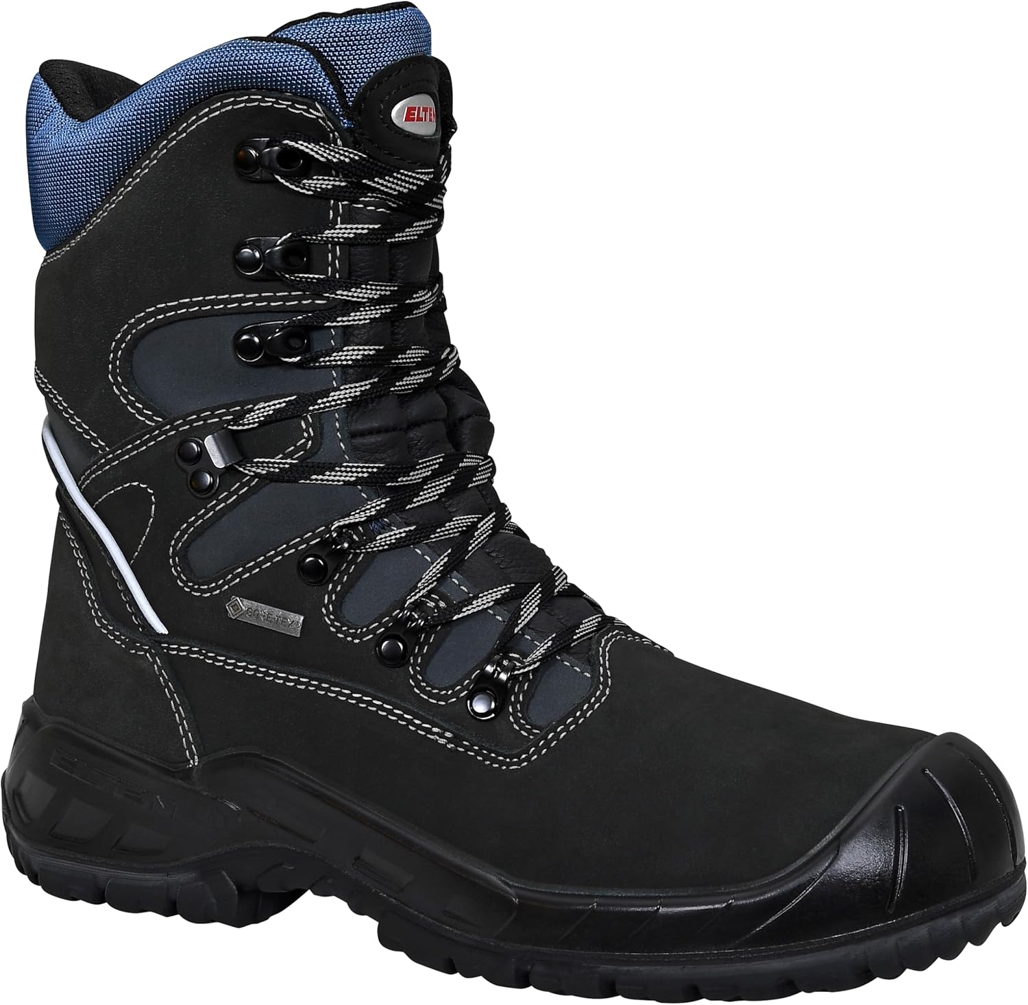- Gummi-Sohle aus der ELTEN SAFETY-GRIP-Serie (rutschhemmend), mittlere Profiltiefe, für alle Bodentypen geeignet, antistatisch, öl- und kraftstoffbeständig