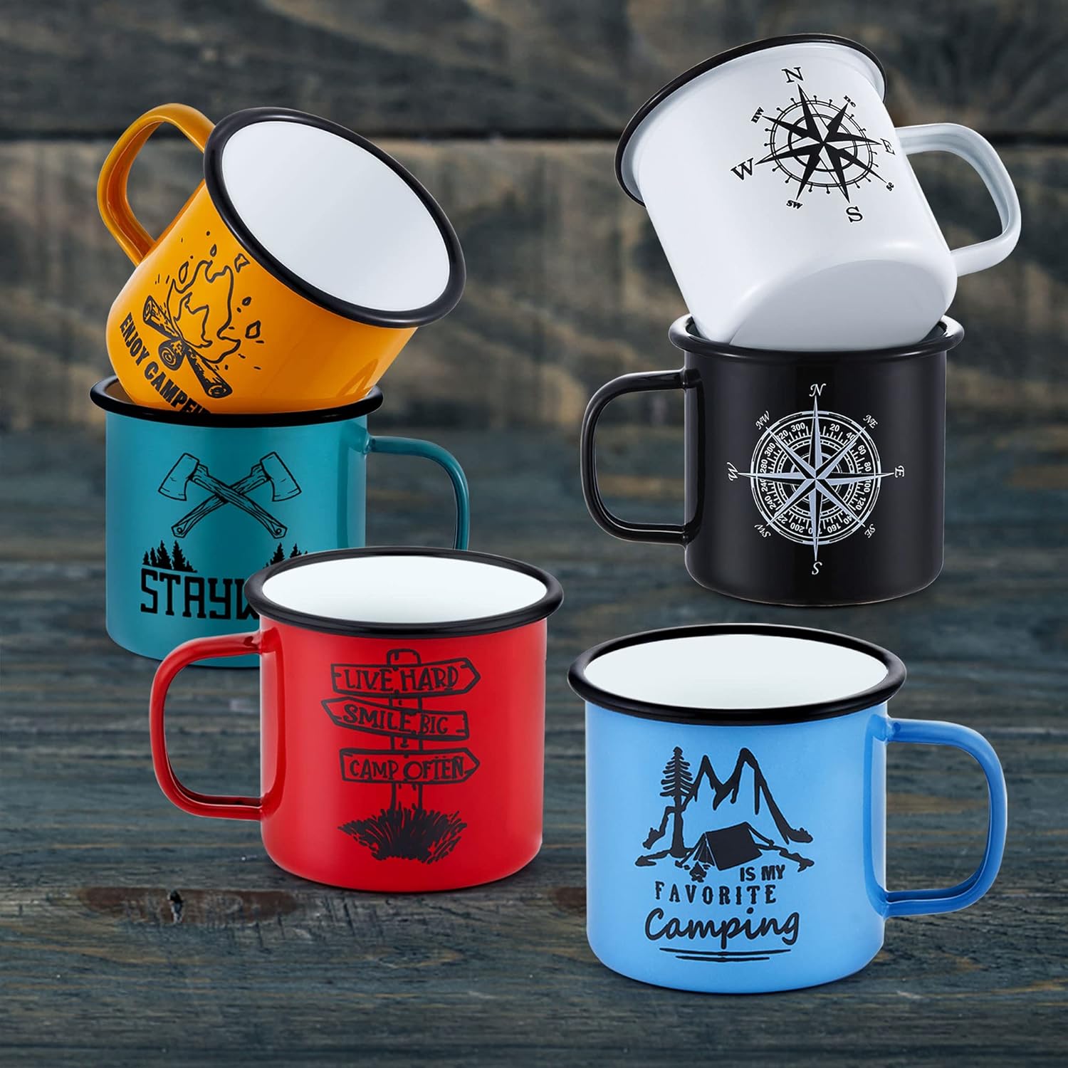 Emaille Tasse 6er-Set, Joyfair 455 ml Bunte Kaffeetassen - Blau/Rot/Grün/Gelb/Schwarz/Weiss, Trinkbe