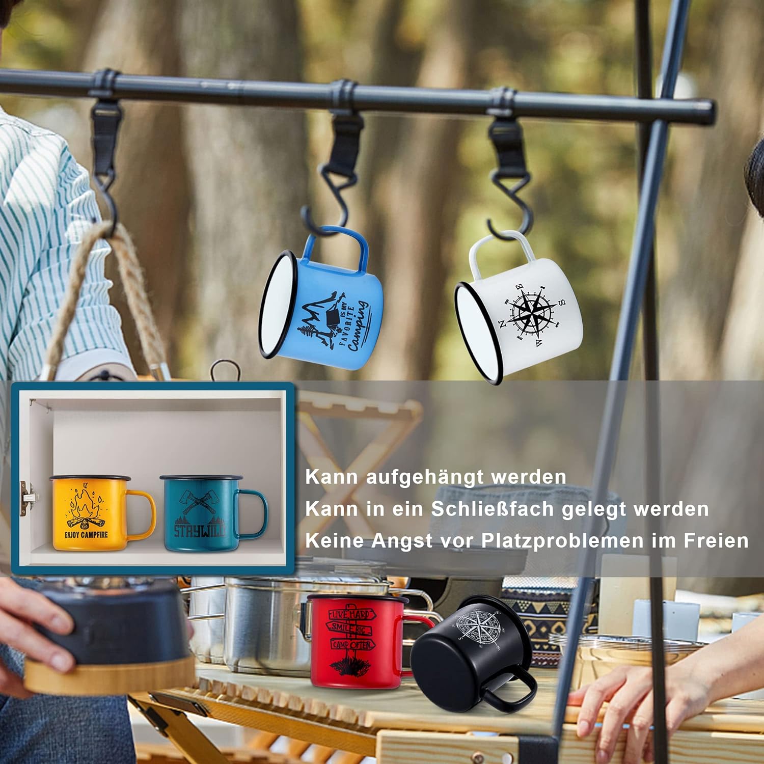 • 【Leicht Zu Tragen】 Diese camping becher sind leicht zu tragen und haben ein angenehmes Gewicht. Sie können für alle Outdoor-Aktivitäten oder den täglichen Gebrauch zu Hause verwendet werden, indem Sie sie einfach an den Haken hängen oder an
