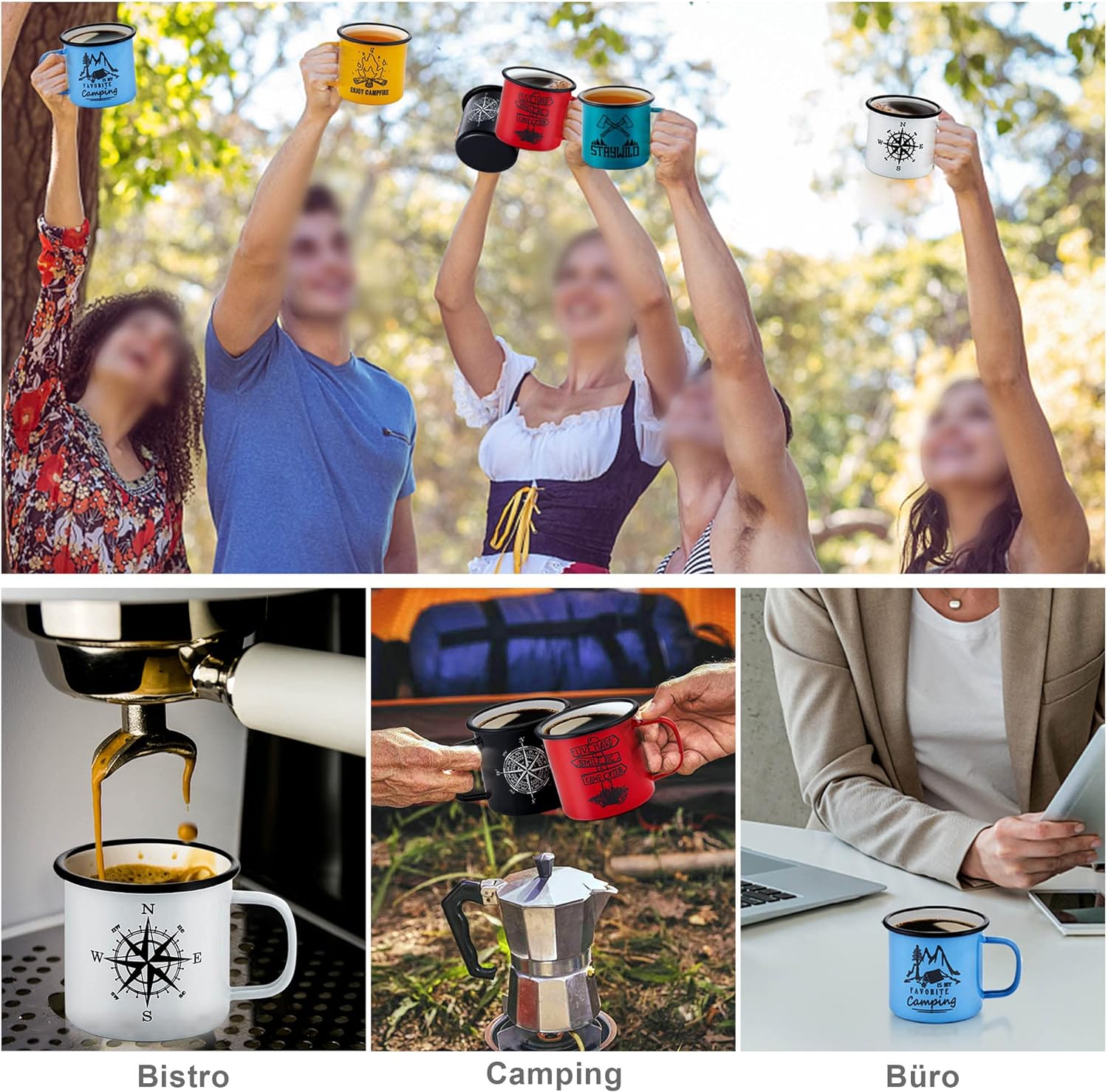 • 【Gesund & Langlebig】 Joyfair emaille tasse set ist aus robustem hochwertigem Eisen und Emaille-Beschichtung, mit den Vorteilen der Korrosionsbeständigkeit, Rostschutz, ungiftig, Emaille-Material wird nicht chemisch mit Lebensmitteln reagieren, um