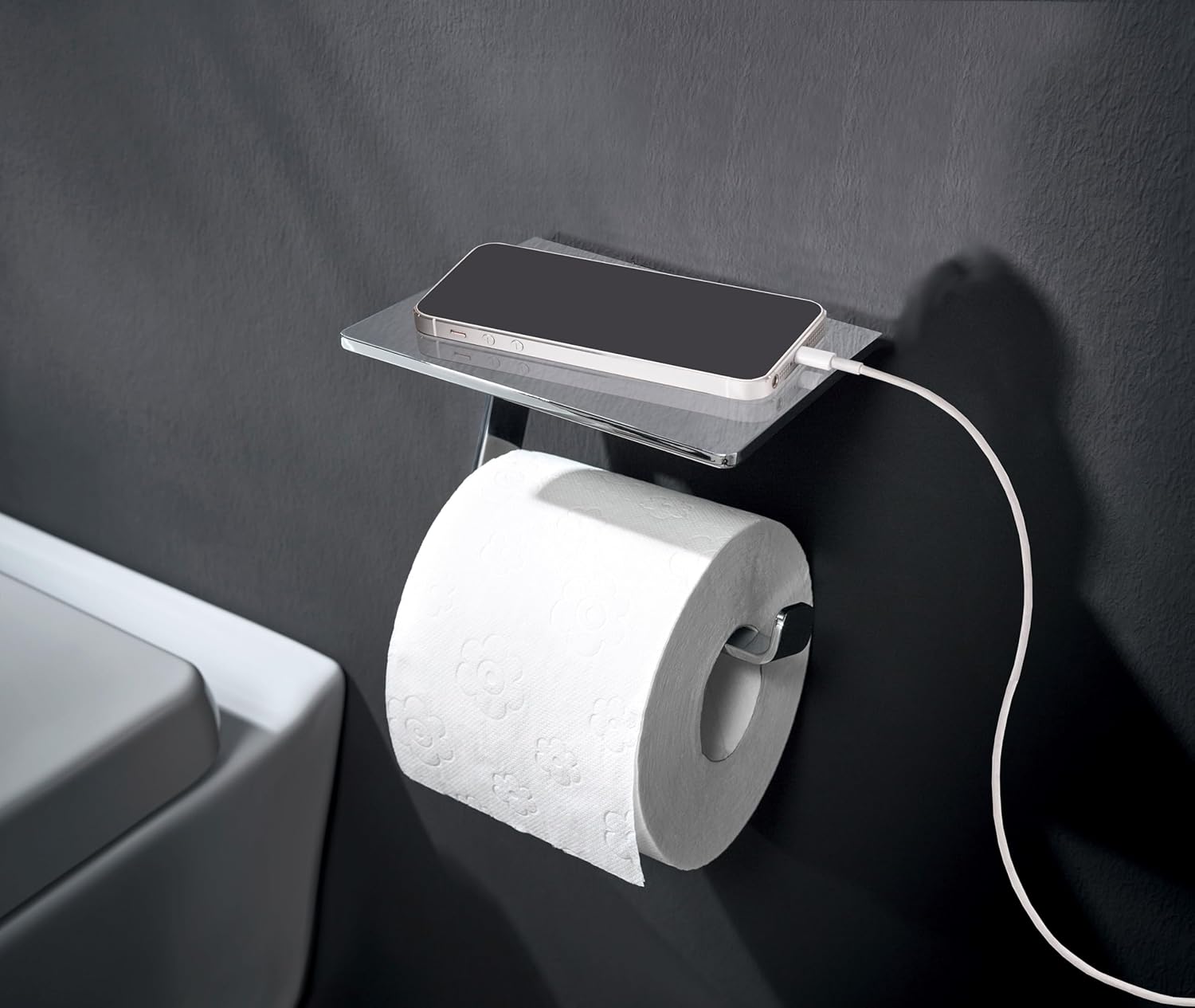 - Intelligentes Design: Der Klopapierhalter in Chromoptik integriert sich elegant und unauffällig in jeden Badezimmerstil. So ist das Toilettenpapier immer griffbereit.