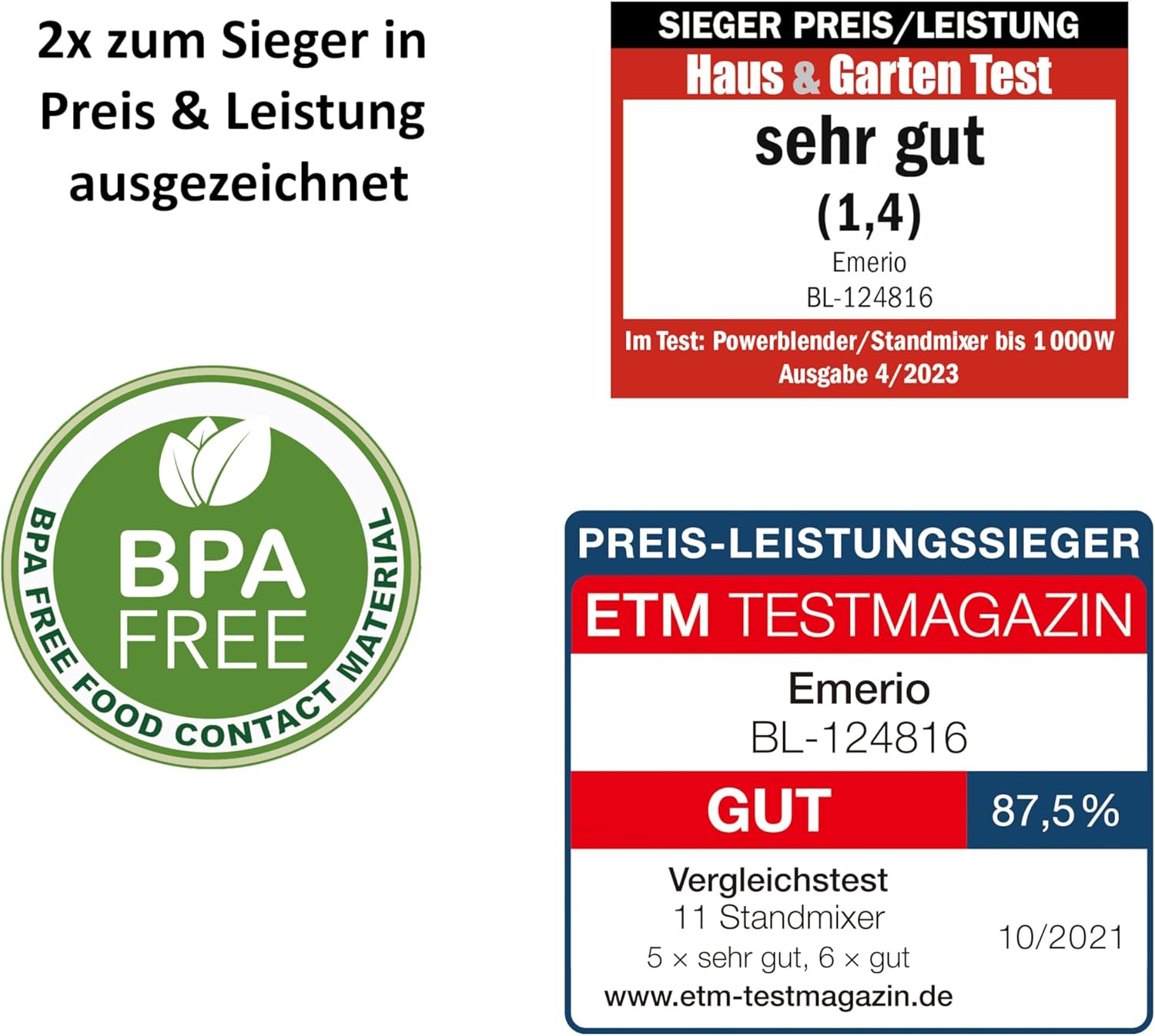 - EMERIO BL-124816 Standmixer 500W Weiss, Schwarz