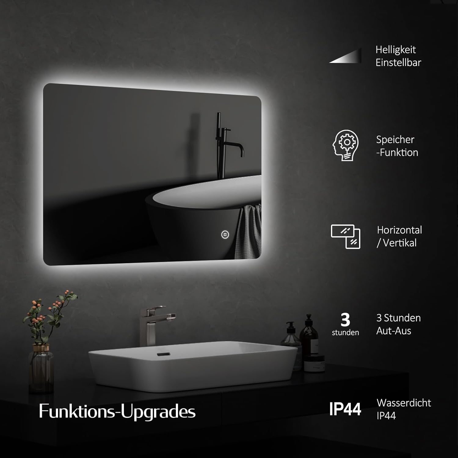 - 【Energiesparende LED】Einem niedrigen Stromverbrauch erfreuen Sie sich, Sehr hochwertiges und wasserdichtes Niveau (IP 44), LED Lebensdauer 50.000 Stunden. Energiesparender badspiegel, Automatische Abschaltung nach 3 Stunden ohne Betrieb.