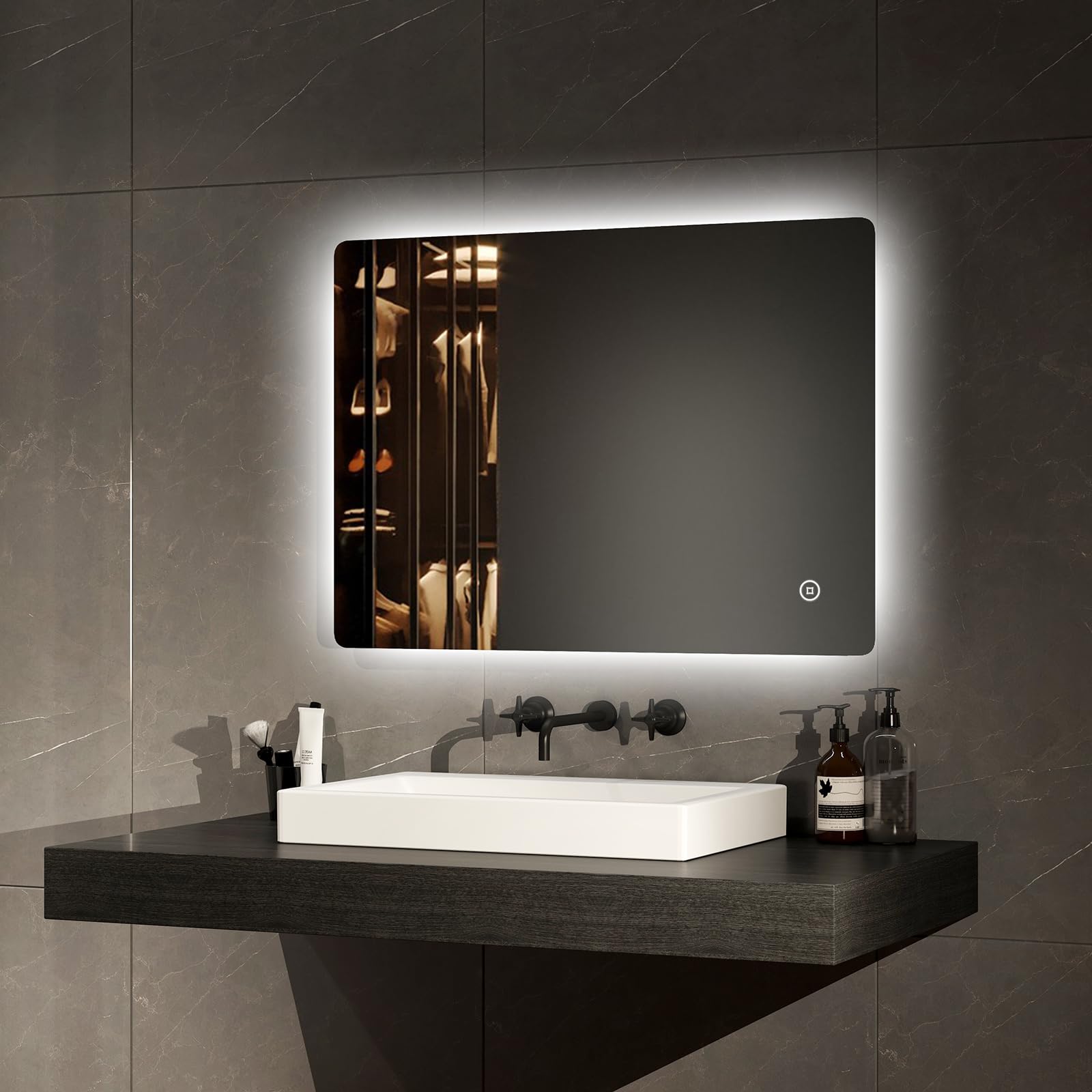- 【Einstellbare Helligkeit】Drücken Sie lange auf die Spiegeltaste, um die Helligkeit einzustellen(10%-100%) ,6500K kaltweisses Licht. EMKE Badspiegel mit Beleuchtung hat eine Speicherfunktion, die Ihre letzte Lichteinstellung merkt.