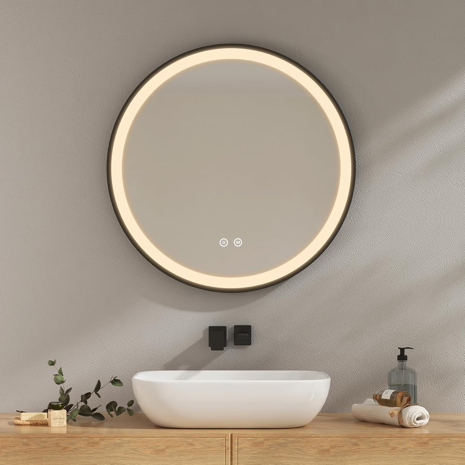 - 【Badspiegel Rund】Badspiegel mit Beleuchtung rund 70cm Durchmesser, Badezimmerspiegel mit 3 Lichtfarb dimmbar( Warmweisses Licht/ kaltweisses Licht/ Mischlicht ), Speicherfunktion, 3 Stunden automatische Abschaltung.