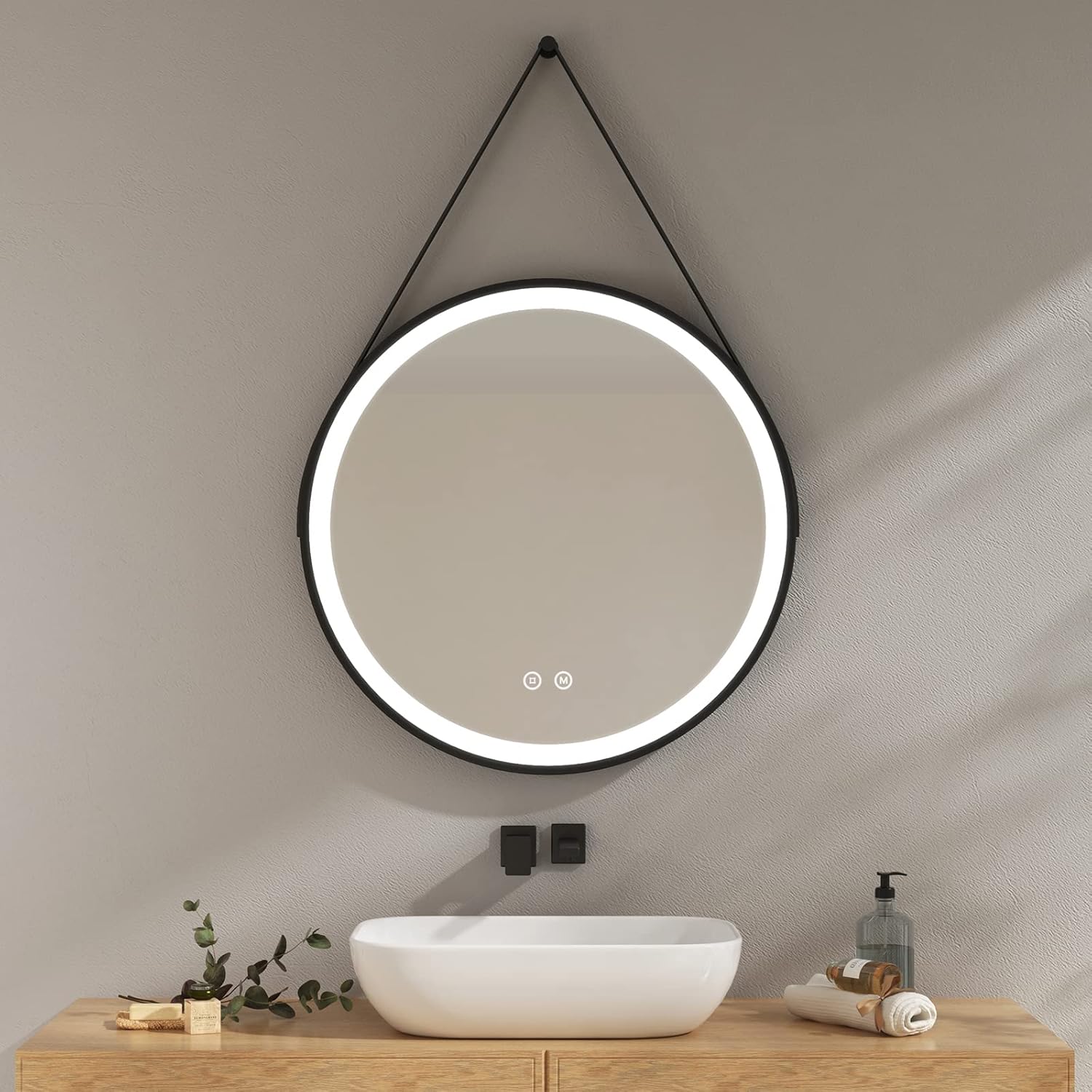 - 【Abnehmbares Spiegelband】Der runder Spiegel hat einen hochwertigen schwarzen Metallrahmen mit einem festen Haken und einem abnehmbaren Spiegelband. Das Spiegelband dieses Badezimmerspiegels kann in der Länge verstellt und nach Bedarf angebracht oder