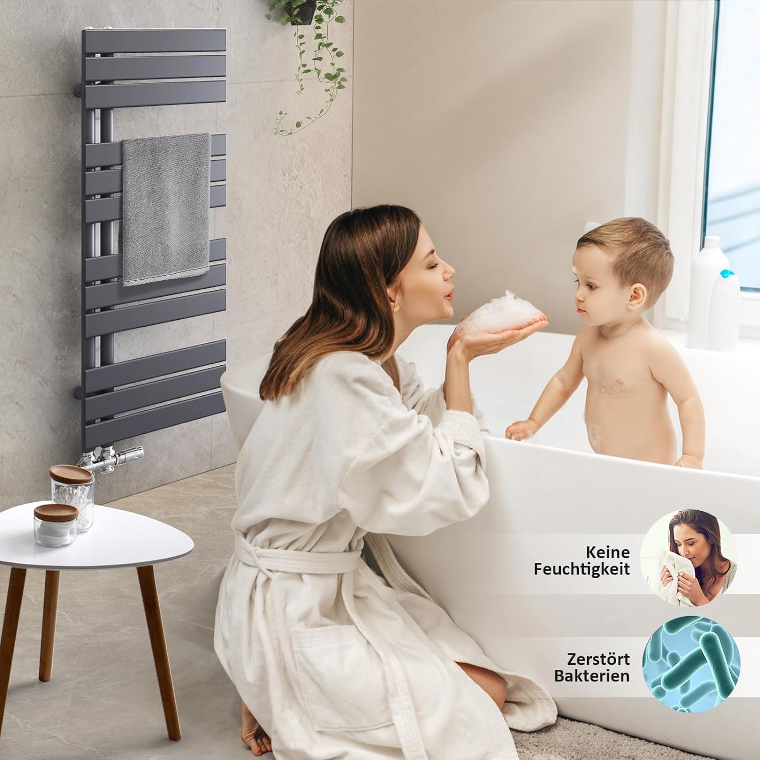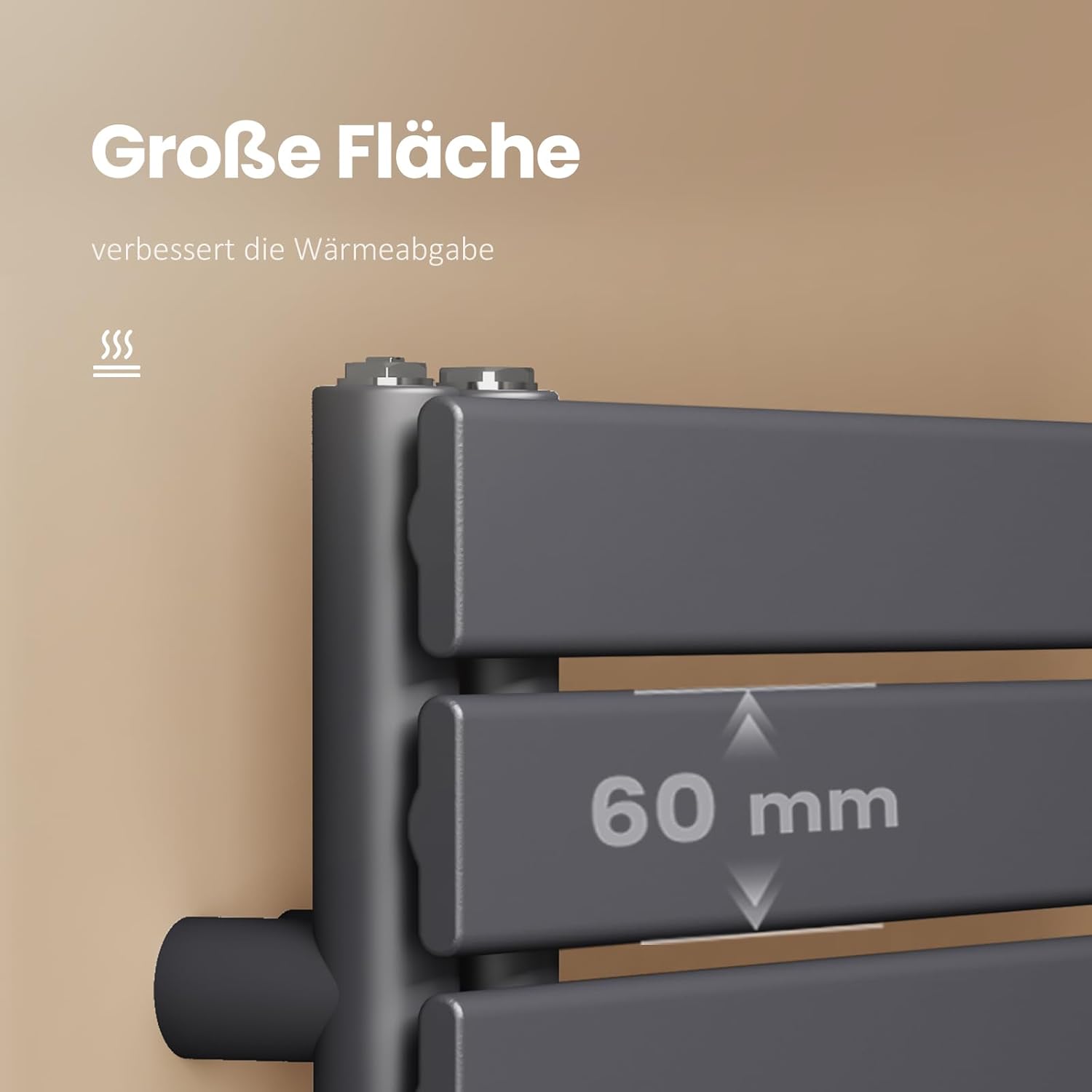 - Handtuchwärmer Material: SPCC-kaltgewalzter Stahl (entspricht der BS EN 442) mit umweltfreundlichen Beschichtungen; Badheizkörper Farbe: Anthrazit.