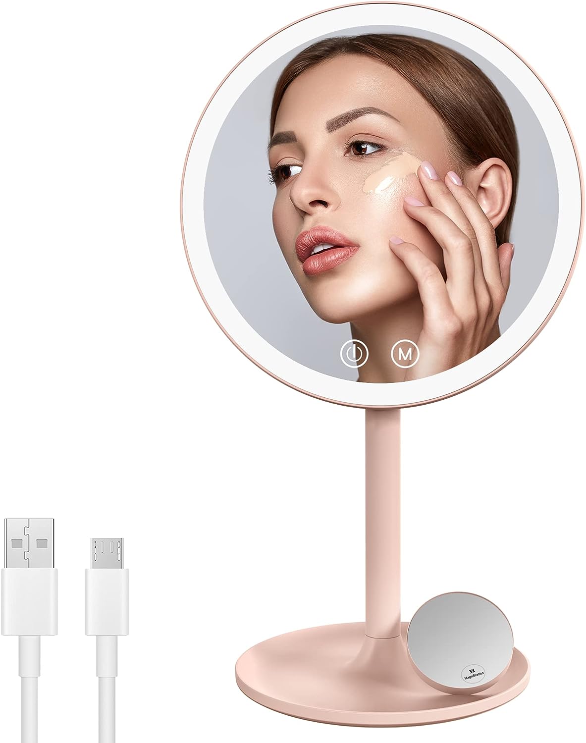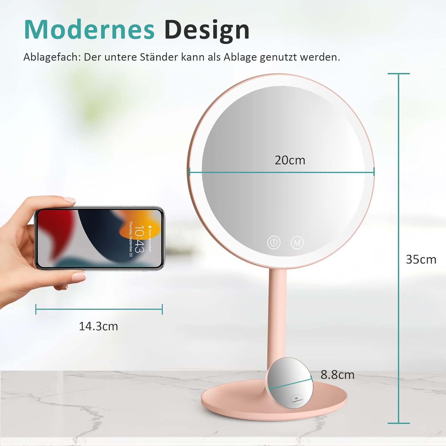 EMKE Schminkspiegel mit Beleuchtung, LED Kosmetikspiegel mit 3 Lichtfarben, Praktisch Makeup Spiegel