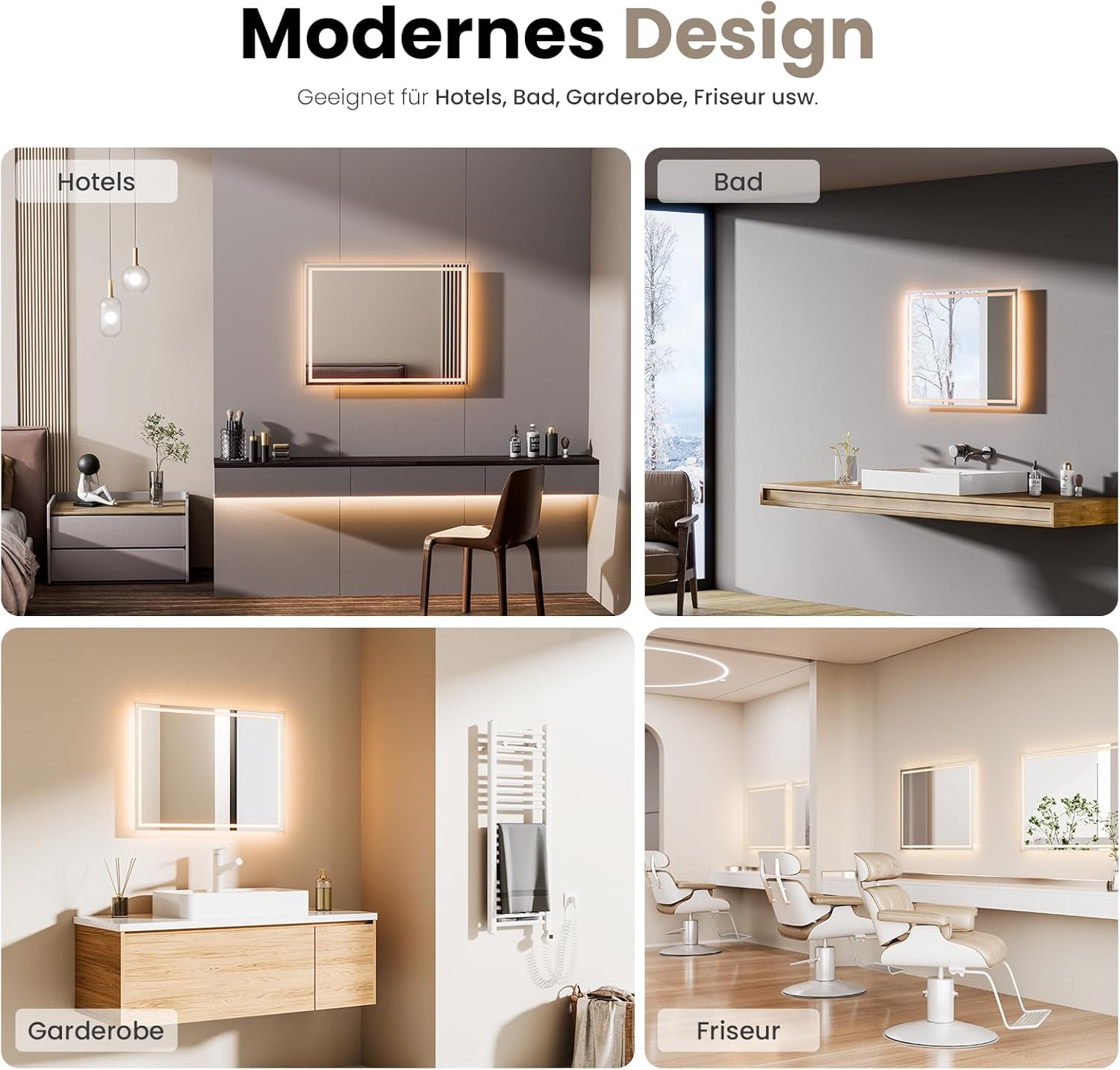 - đĄăBadspiegel grösseă80 x 60 cm, Das Weisswarm Licht verfĂŒgt ĂŒber 3000k (ohne Touch-Schalter und ohne Antibeschlagsfunktion).