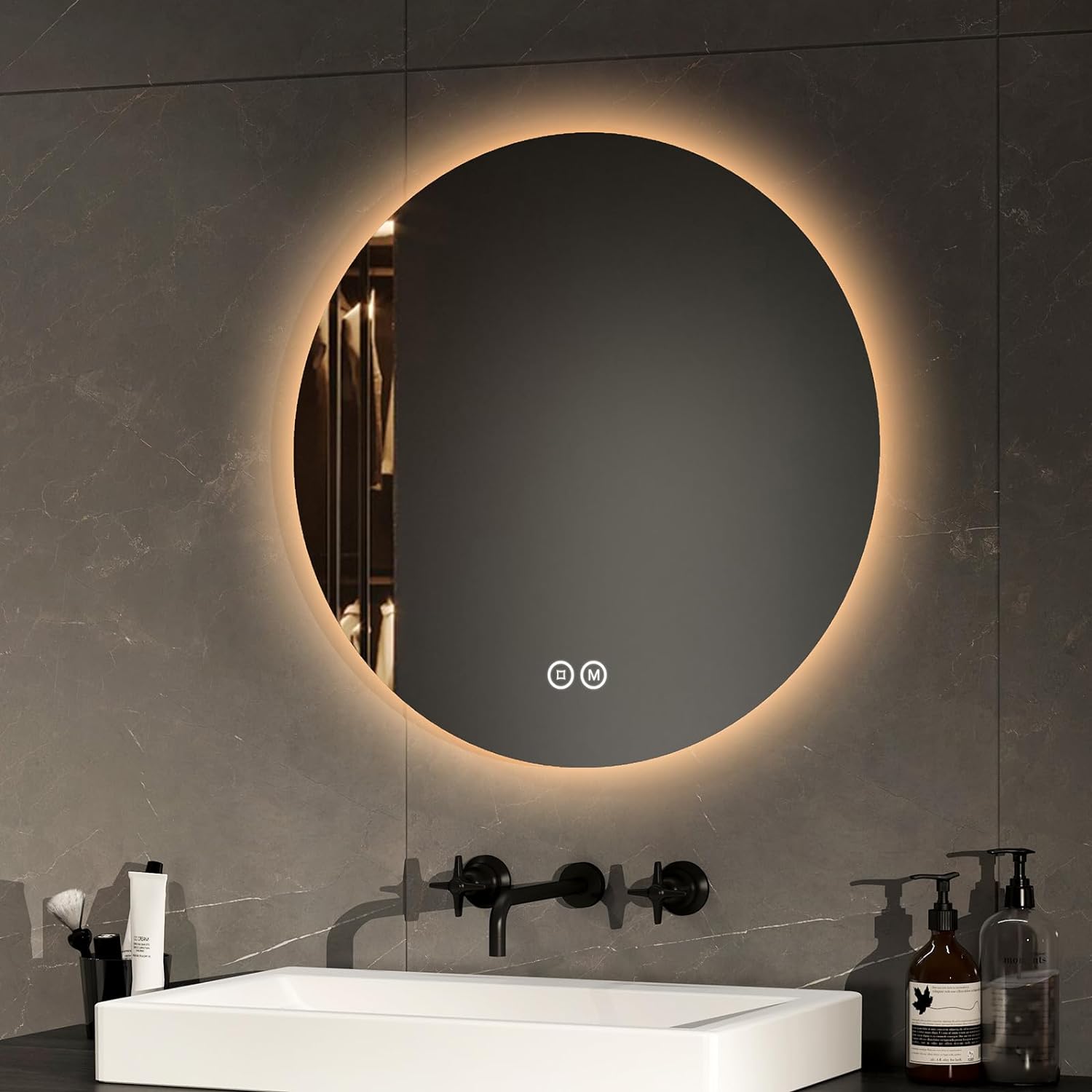 - 【Badspiegel grösse】Badspiegel mit Beleuchtung rund 50cm Durchmesser, 3 Lichtfarb dimmbar Warmweisses Licht/ kaltweisses Licht/ Mischlicht, hinterleuchtet, Speicherfunktion, 3 Stunden automatische Abschaltung.