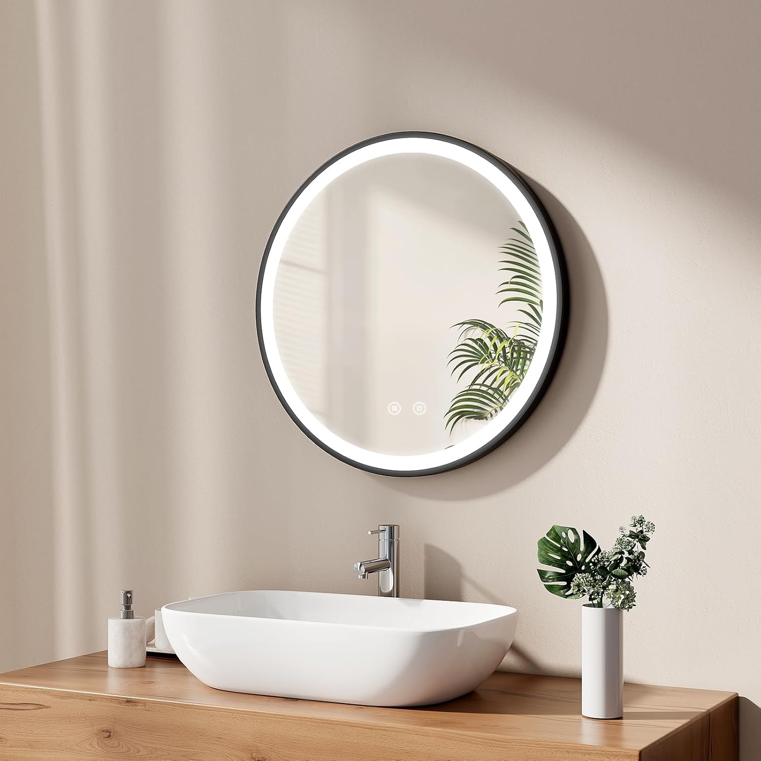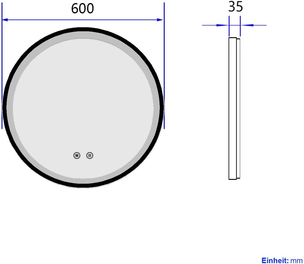 - 【Funktions Upgrade】EMKE Badspiegel mit beleuchtung rund 60cm.Spiegel rund mit Touchschalter, 6500K Kaltweisses Licht dimmbar, separater Anti-Beschlag-Funktion, speicherfunktion, automatische Abschaltung nach 3 Stunden.