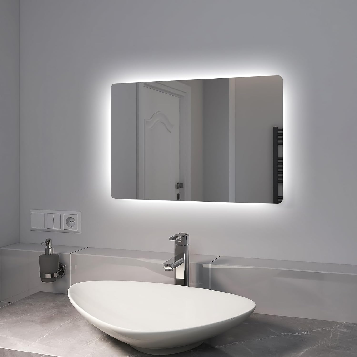 • 【2 Lichtfarben】Der EMKE Badspiegel mit Beleuchtung verfügt über zwei Arten von Licht. Sie können das Warmweisses Licht oder Kaltesweisses Licht über die Taste einstellen. Wählen Sie das richtige Licht je nach Ihren Vorlieben. (Hinweis: Die