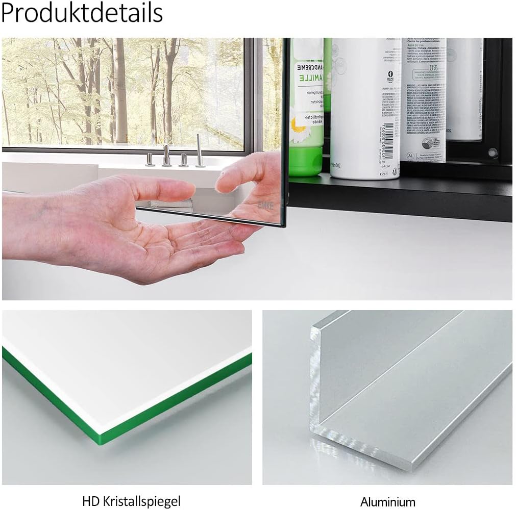 - 【Umweltfreundliche Materialien】Spiegel ohne Kupfer und Quecksilber. Der Gehäusekörper besteht aus einem 1,0-1,2 mm dicken pulverbeschichteten Aluminiumprofil und der Spiegeltürrahmen besteht aus ABS-Thermopolymer weshlab er robust und stabil ist.