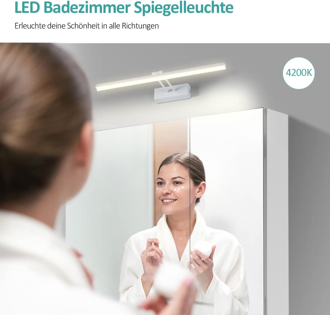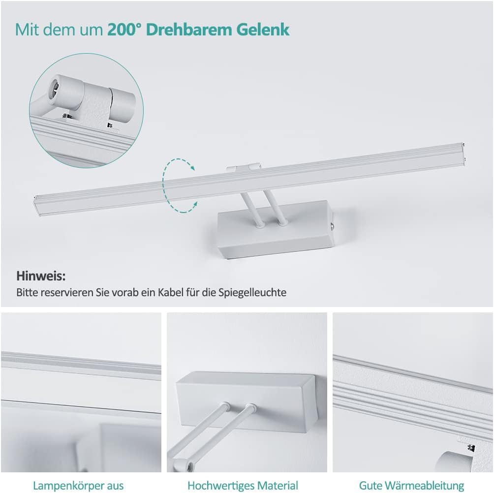 - 【Spiegelleuchte Schalter】Die Spiegelleuchte wird direkt an ein Stromkabel angeschlossen und über einen Lichtschalter bedient, 8W | Neutral Licht (Der Schalter ist im Lieferumfang nicht enthalten).