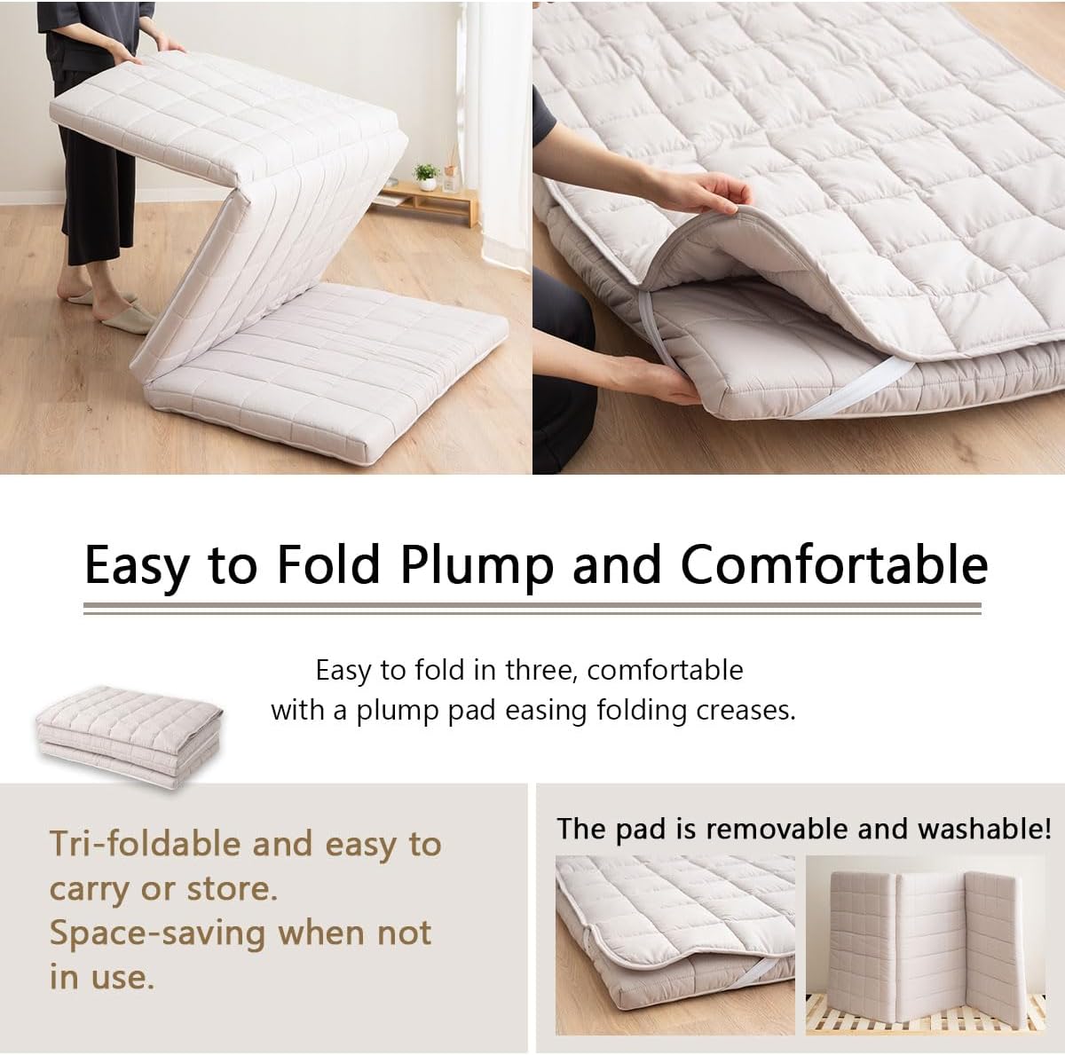 - [FALTBAR, LAGERBAR UND KOMFORTABEL] Dreifach faltbar, leicht zu tragen oder zu lagern. Platzsparend bei Nichtgebrauch. Wird mit einer dicken Polsterung geliefert, die Falten glättet und für einen bequemeren Schlaf sorgt! Da die Unterlage abnehmbar und