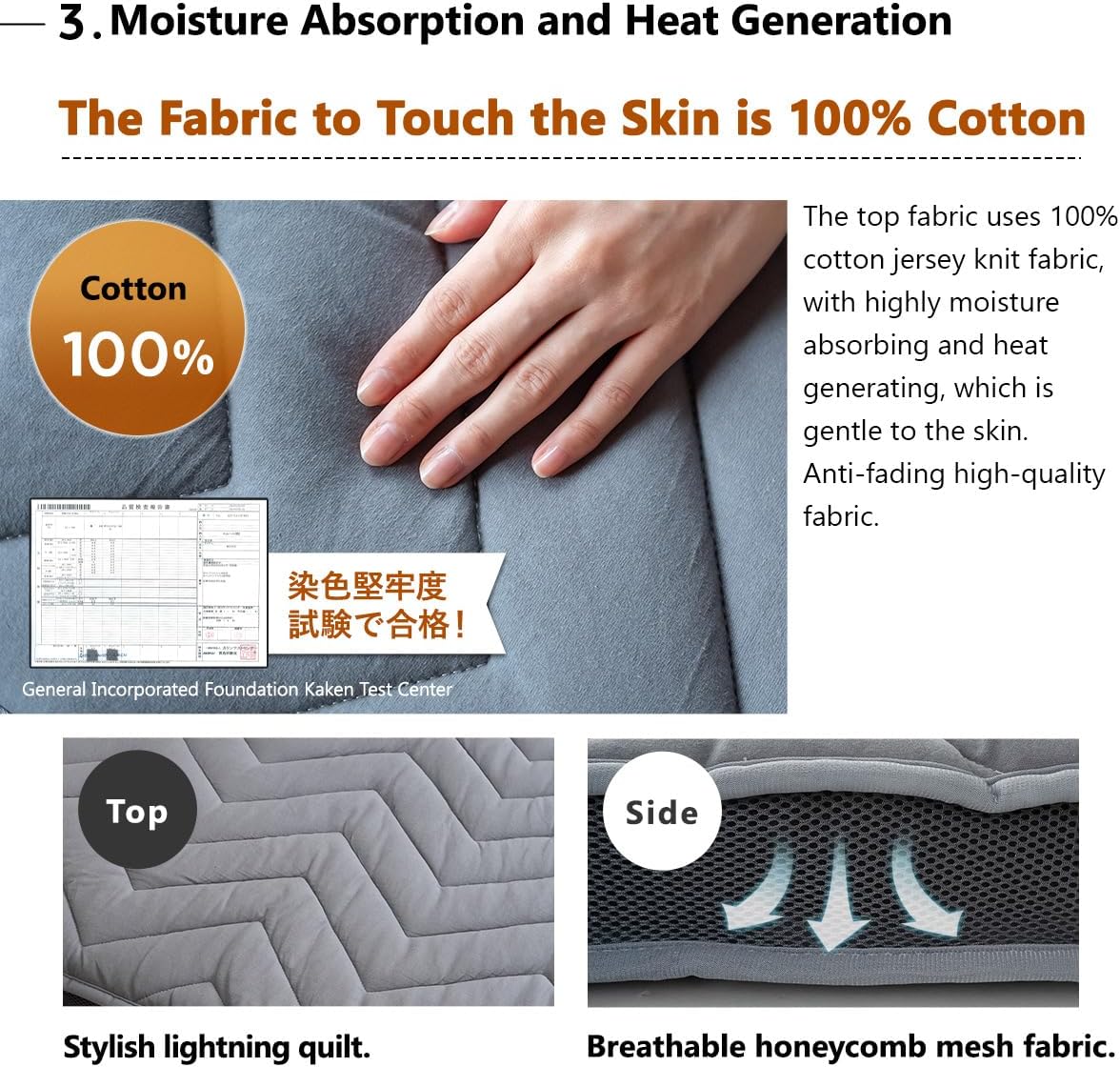 - [SANDWICHSTRUKTUR] Das mittlere Urethanpolster ist zwischen dicken Stepppolstern mit weicher Wollmischungsfüllung eingebettet. Weiche, aber feste Stütze wie bei traditionellen japanischen Futonmatratzen. Wolle absorbiert Feuchtigkeit, erzeugt Wärme