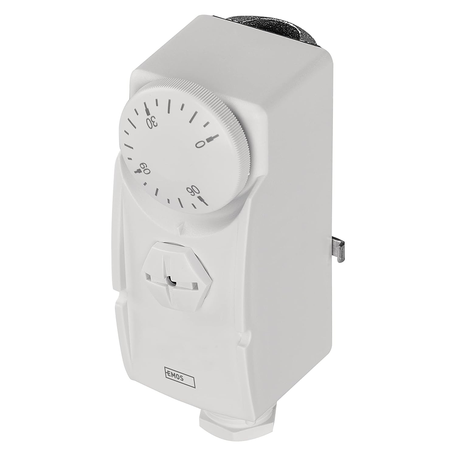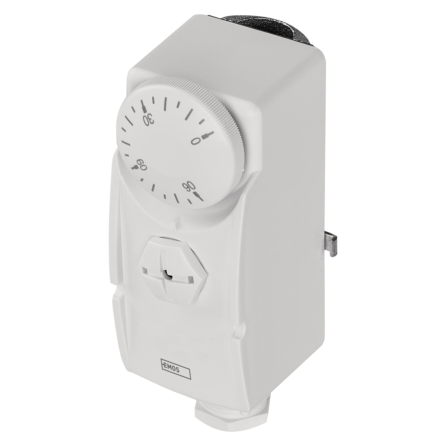 - Manueller analoger Thermostat auf Rohr zur Schaltung von Stellantrieben, Wasserbereitern, Umwälzpumpen am Kessel, Klimaanlagen usw. An einem Rohr aus thermisch leitendem Material befestigt kann er die Temperatur der Flüssigkeit erkennen und weiter