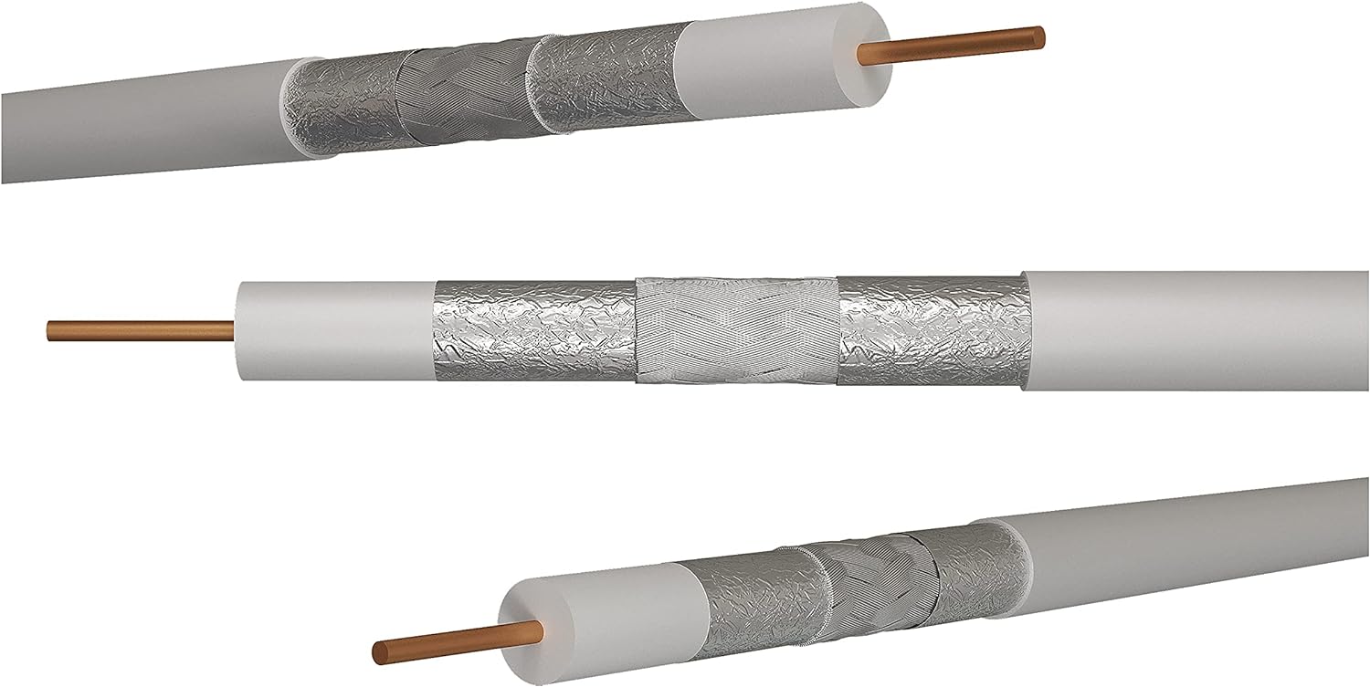 - Koaxialkabel höchster Qualität Typ RG6 mit Innenleiter aus reinem Kupfer und TRISHIELD-Dreifachschirmung aus Aluminium, Farbe weiss. Das Kabel ist für alle anspruchsvollen Übertragungsanwendungen - innere Verkabelungen, CCTV, TV und SAT-Signale