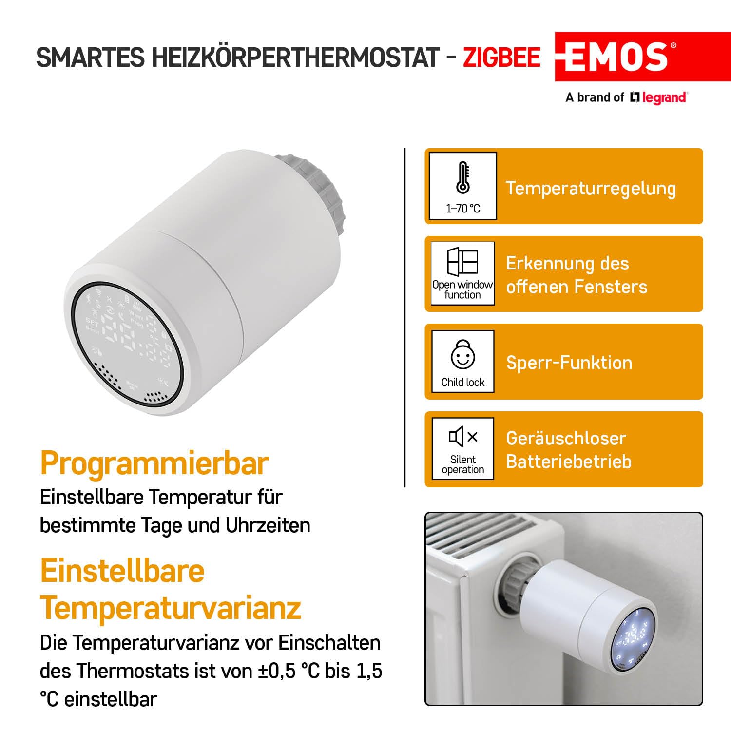 EMOS GoSmart Heizkörperthermostat mit App, programmierbarer ZigBee Smart Home Thermostat, einstellba