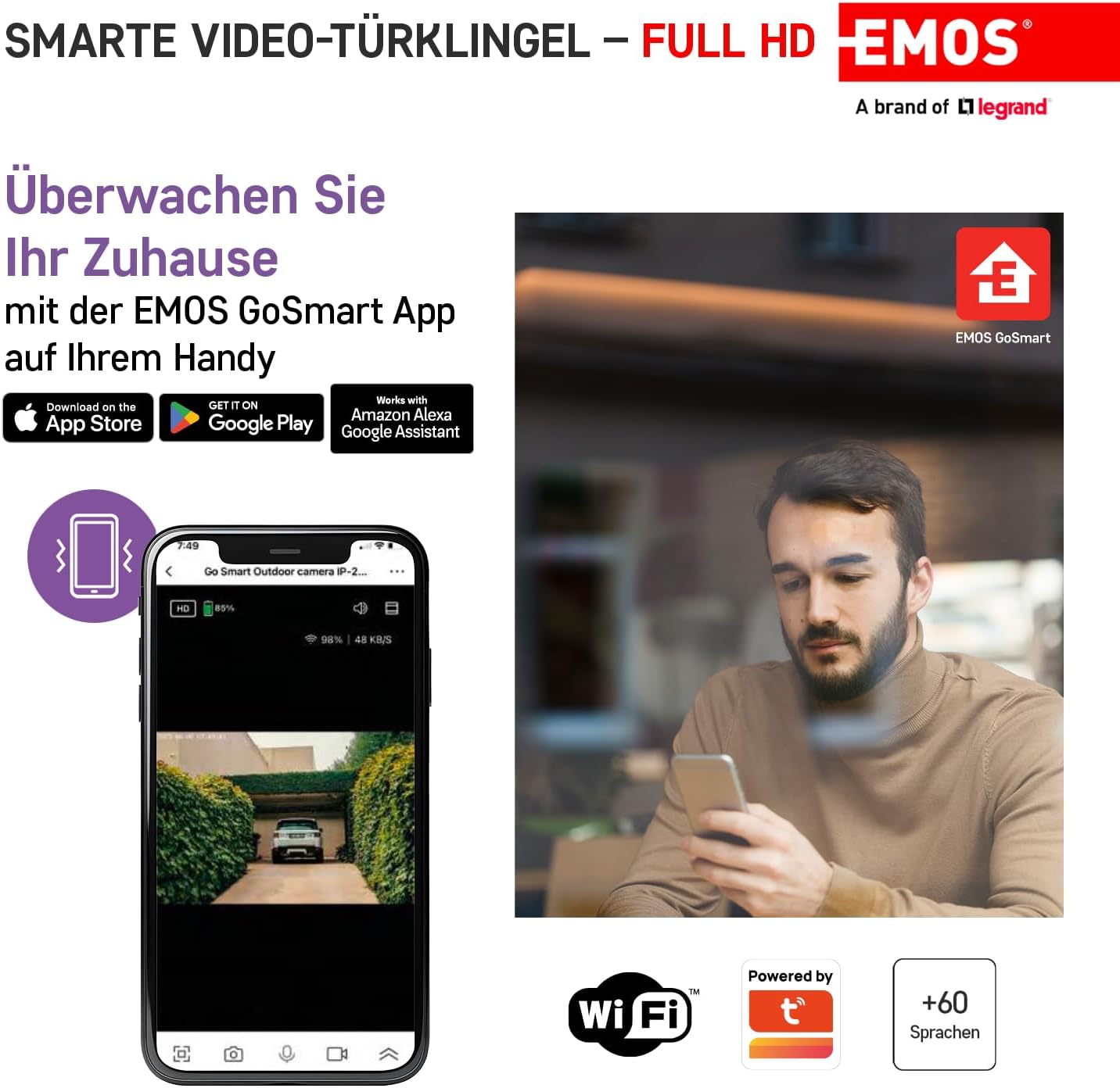 - Laden Sie die kostenlose EMOS GoSmart App von Google Play oder App Store herunter und überwachen Sie Ihre Eingangstür von Ihrem Handy mit Android oder iOS. Unterstützt Fernbedienung über Tuya, Smart Life und Sprachsteuerung über Alexa, Google