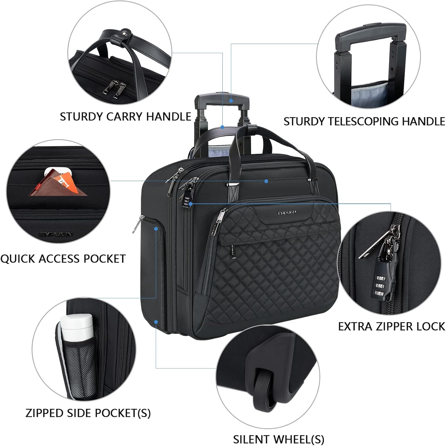 - MOBILES BÜRO: EMPSIGN Rolltasche mit Laptop-Fach ist multifunktional in einem, geeignet für Geschäfts- und Privatreisen. Passt problemlos in die meisten Gepäckfächer der Fluggesellschaften und erfüllt die meisten Anforderungen an die